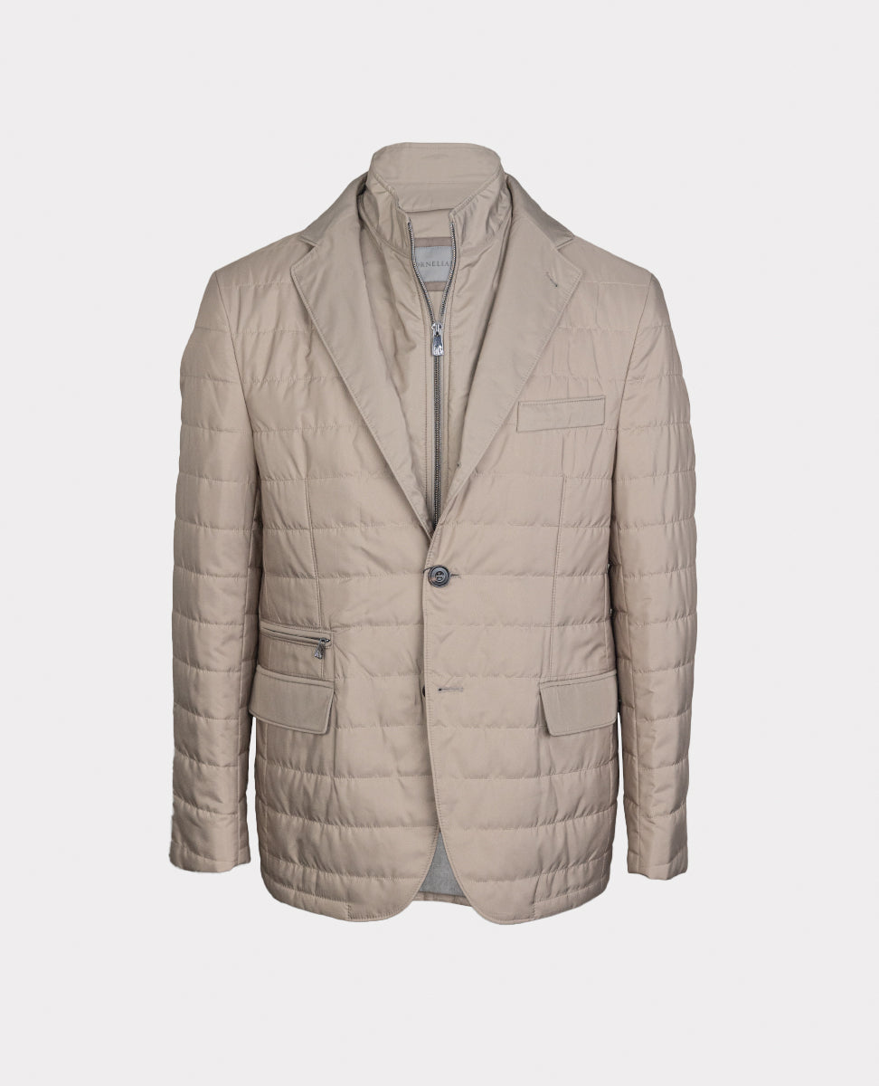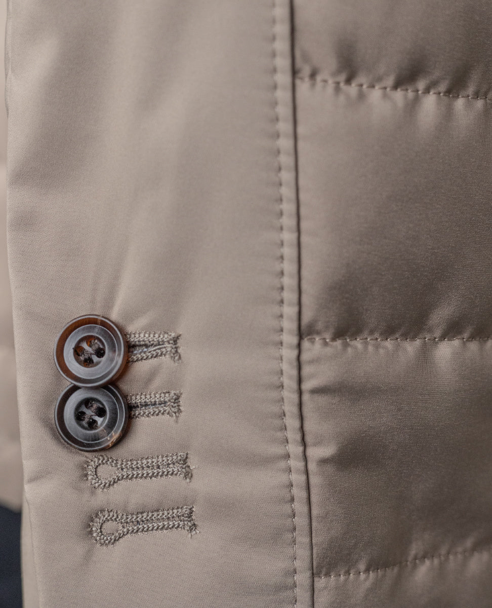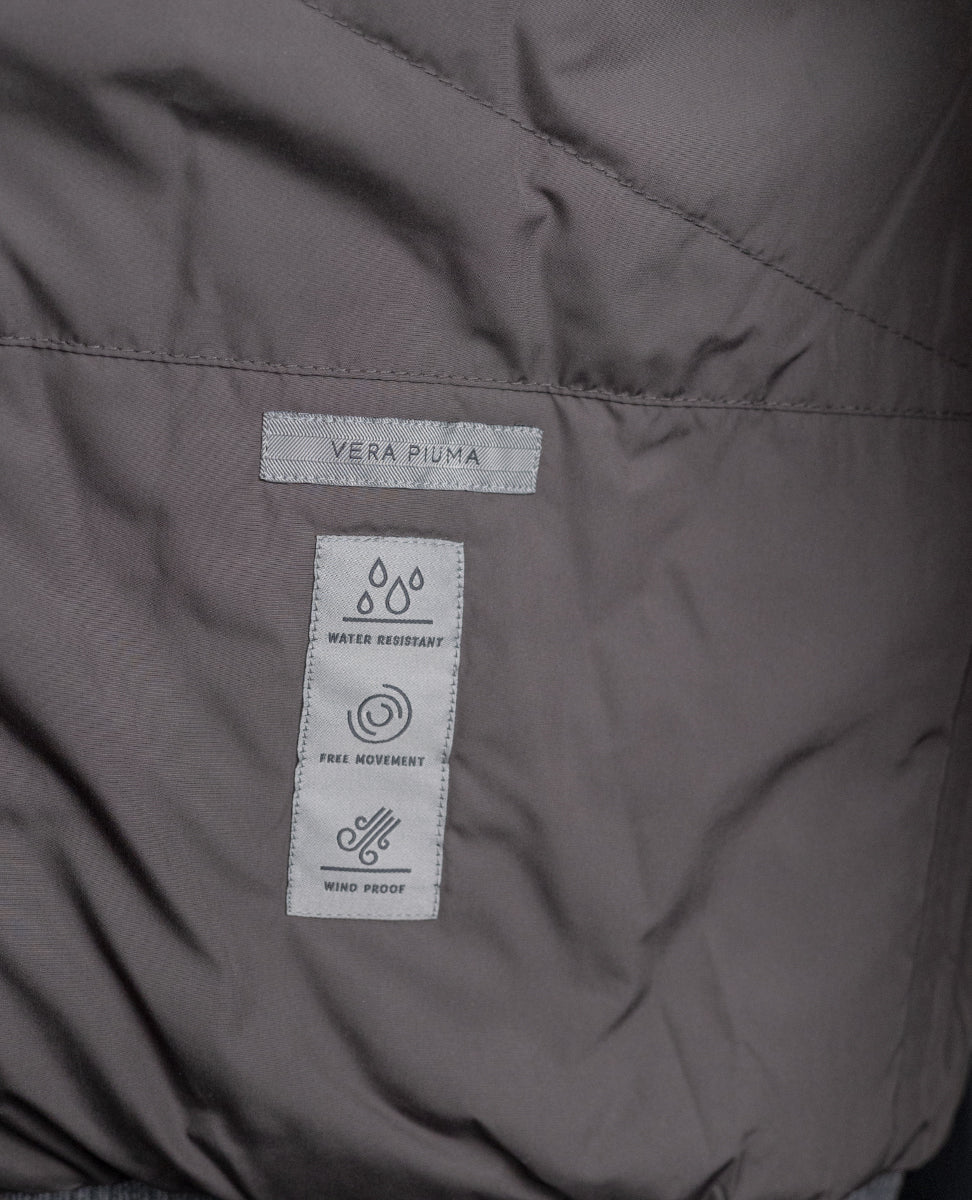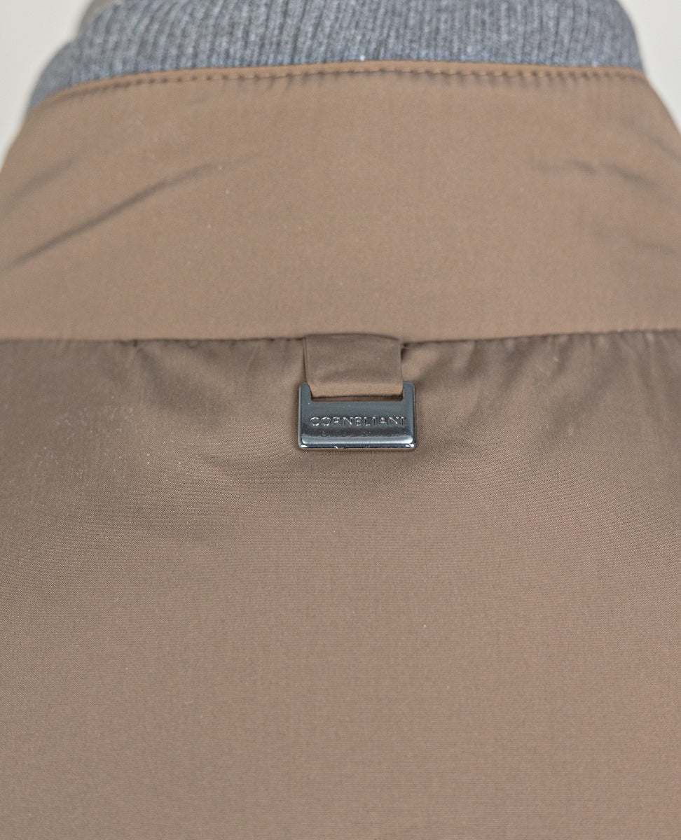 The brown micro patterned wool and cashmere gilet is a versatile, classy garment, perfect for those seeking both comfort and style. Reversible and wadding-padded, this garment combines soft warmth with functional technical details.