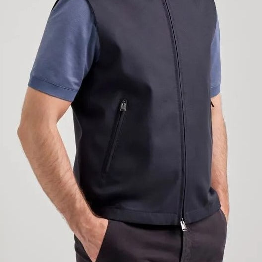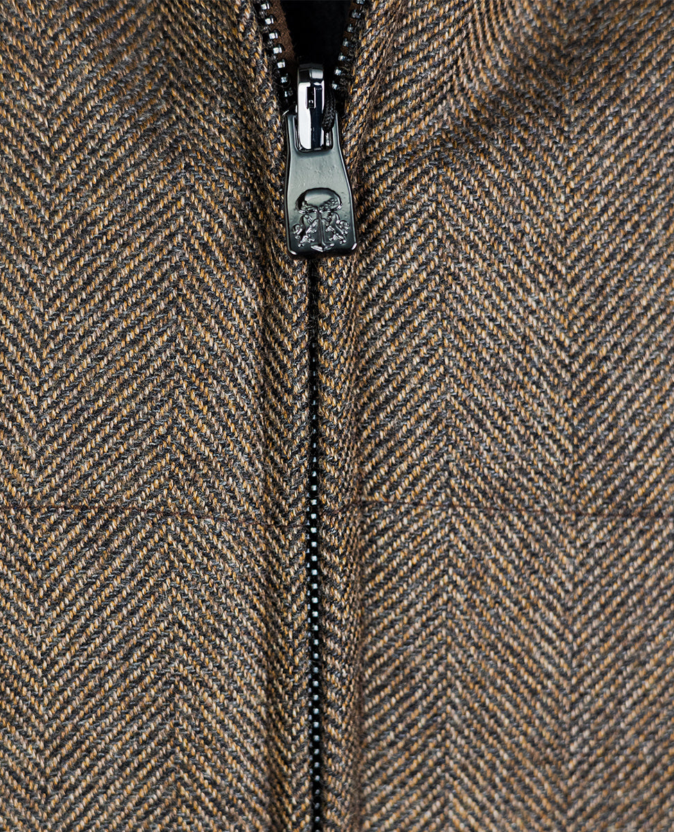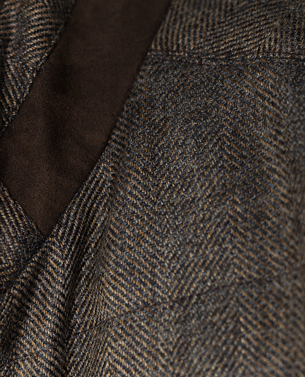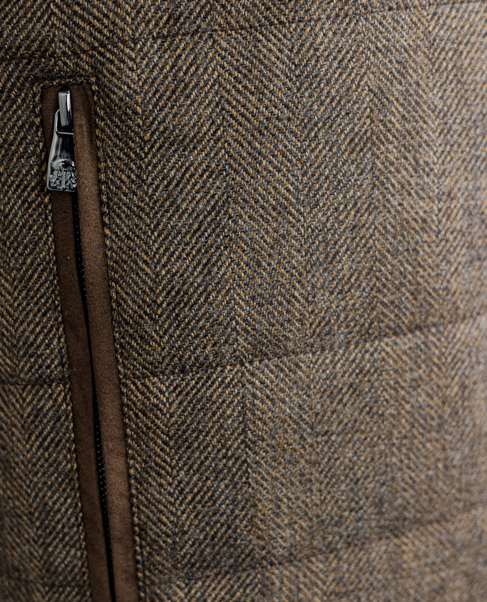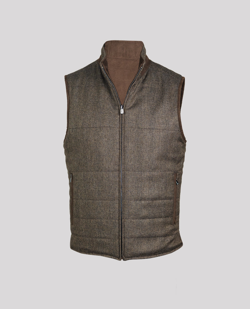 The brown micro patterned wool and cashmere gilet is a versatile, classy garment, perfect for those seeking both comfort and style. Reversible and wadding-padded, this garment combines soft warmth with functional technical details.