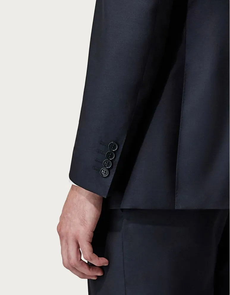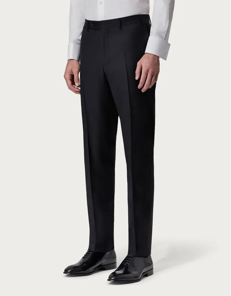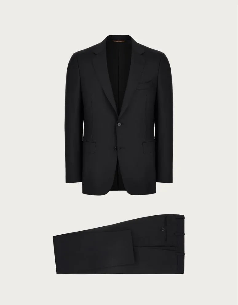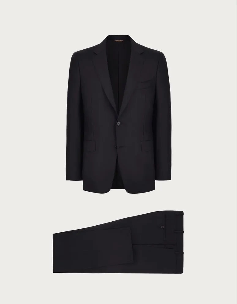 Neat lines enhance the elegance of this pure wool suit, defined by the comfort of the regular fit. Consisting of a single-breasted jacket and pants with a practical, dartless design, it has been created for the businessman who likes to stand out with his style choices.