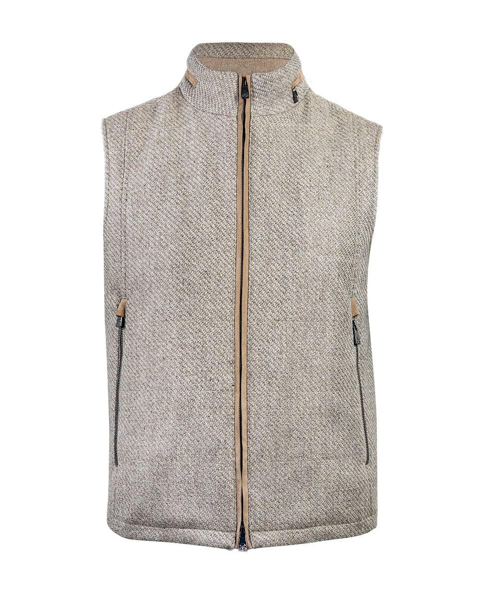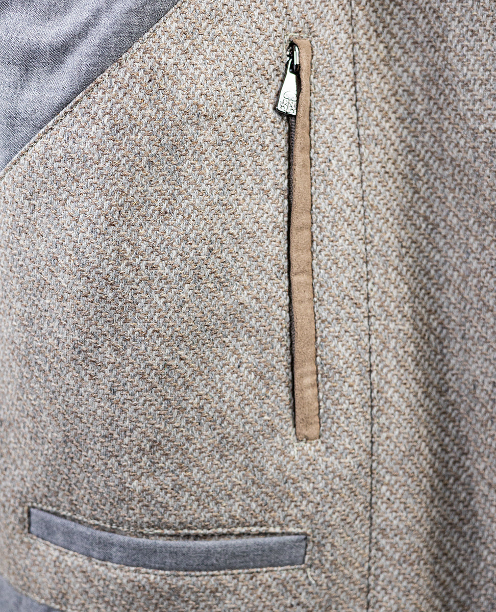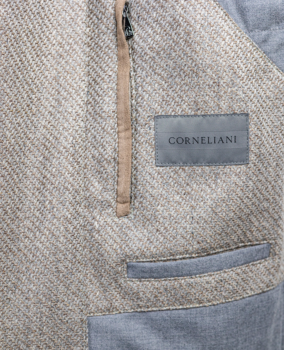 The brand's vocation to favour quality fabrics makes wool one of the star yarns in the new Fall Winter collection. This style of waistcoat features a quilted front and a zip fastening. Featuring a hood with adjustable drawstring and a quilted horizontal striped lining in pure wool, it is a must-have wardrobe staple for the Corneliani man
