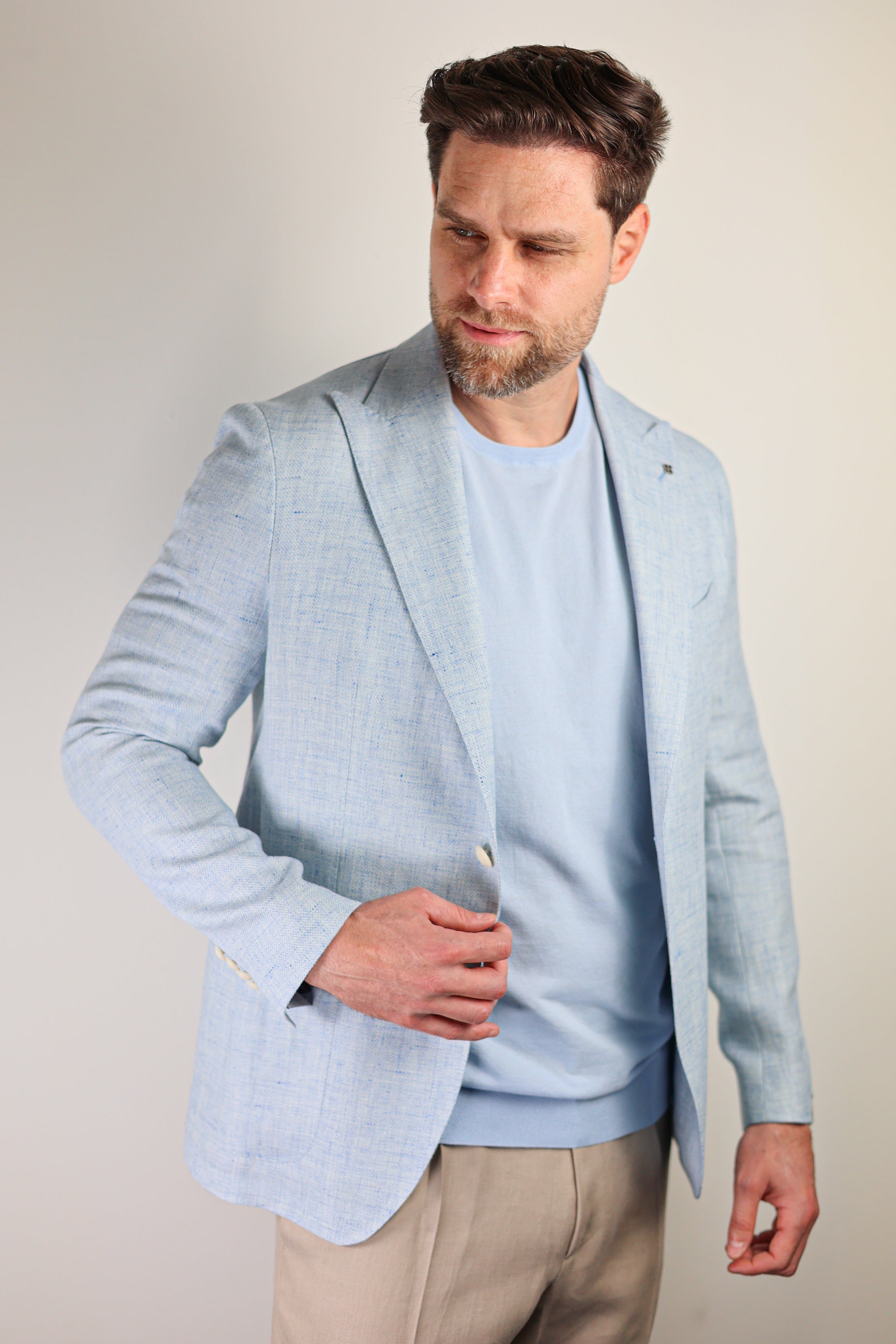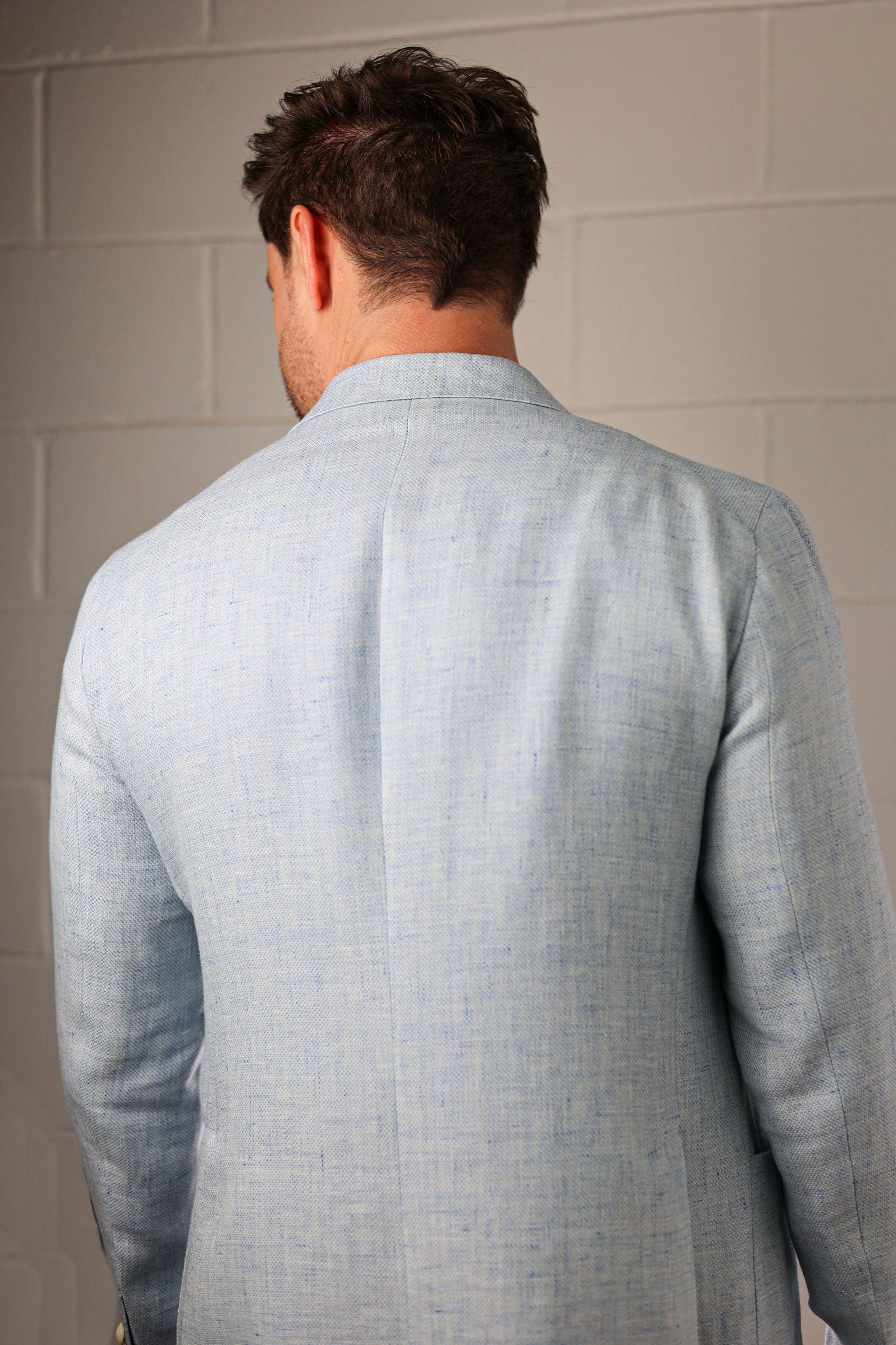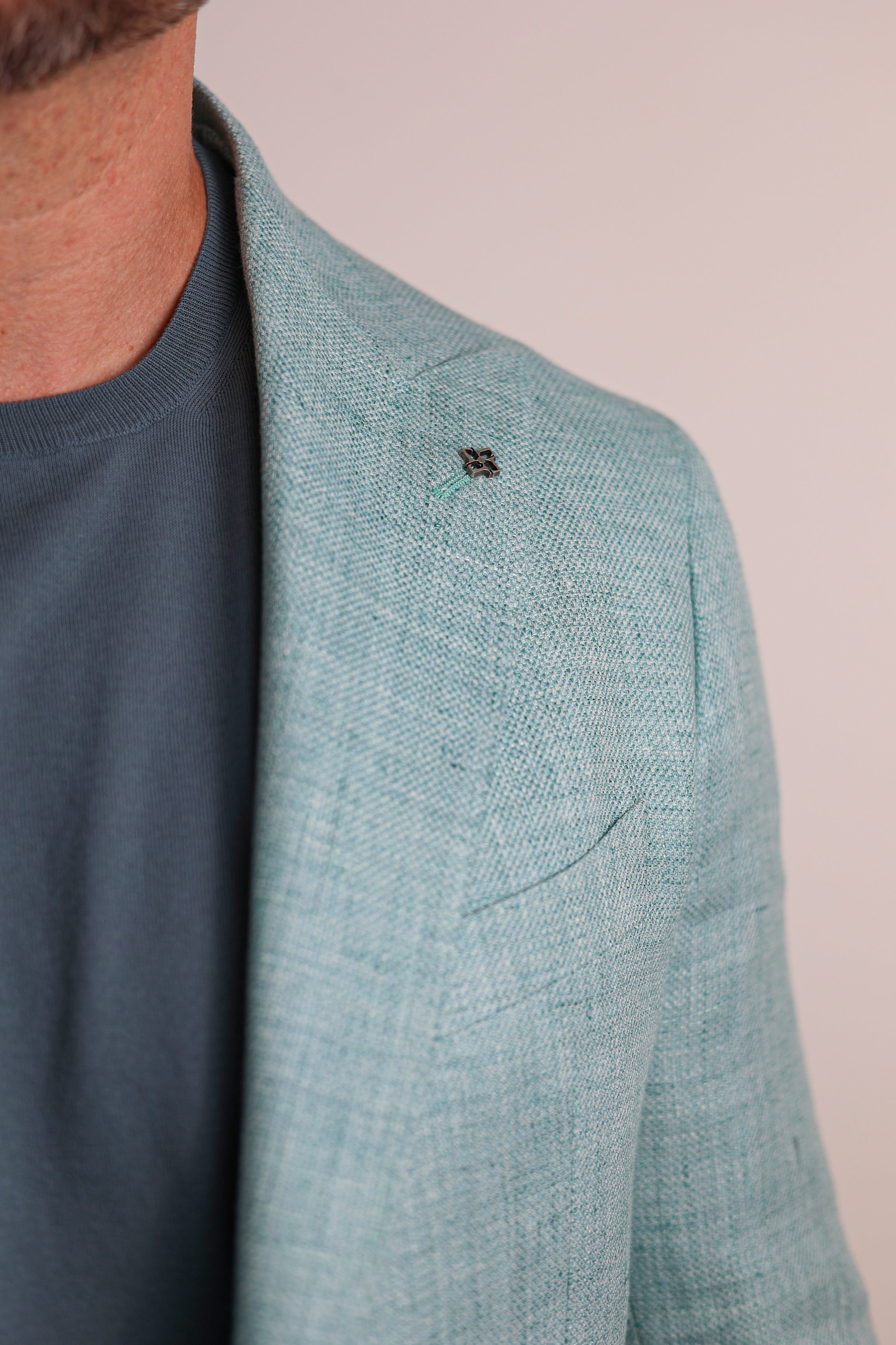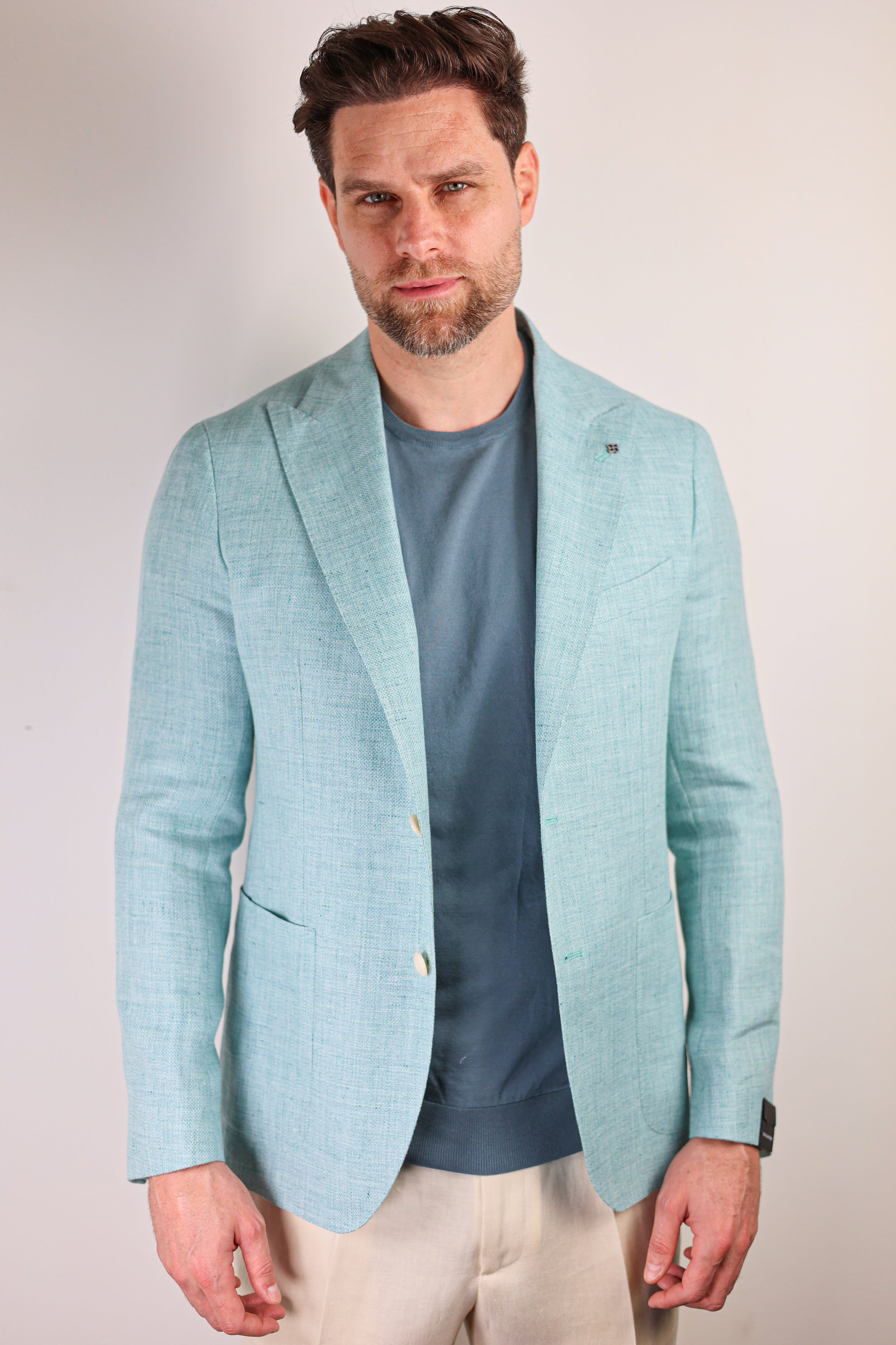 Montecarlo unlined jacket, single breasted 2 buttons, peak lapels, side vents, patch pockets - 60% LINEN 40% VIRGIN WOOL