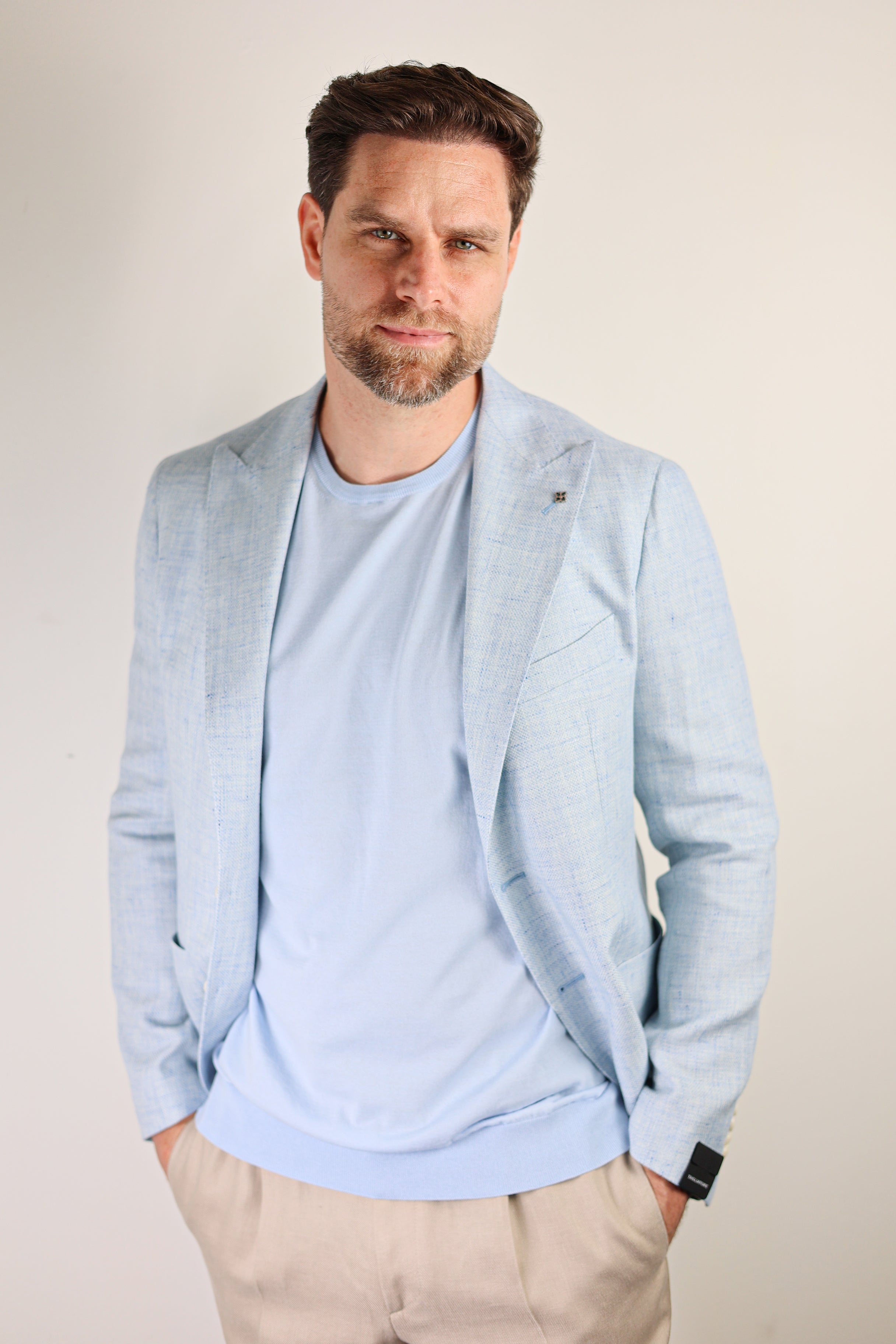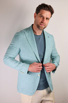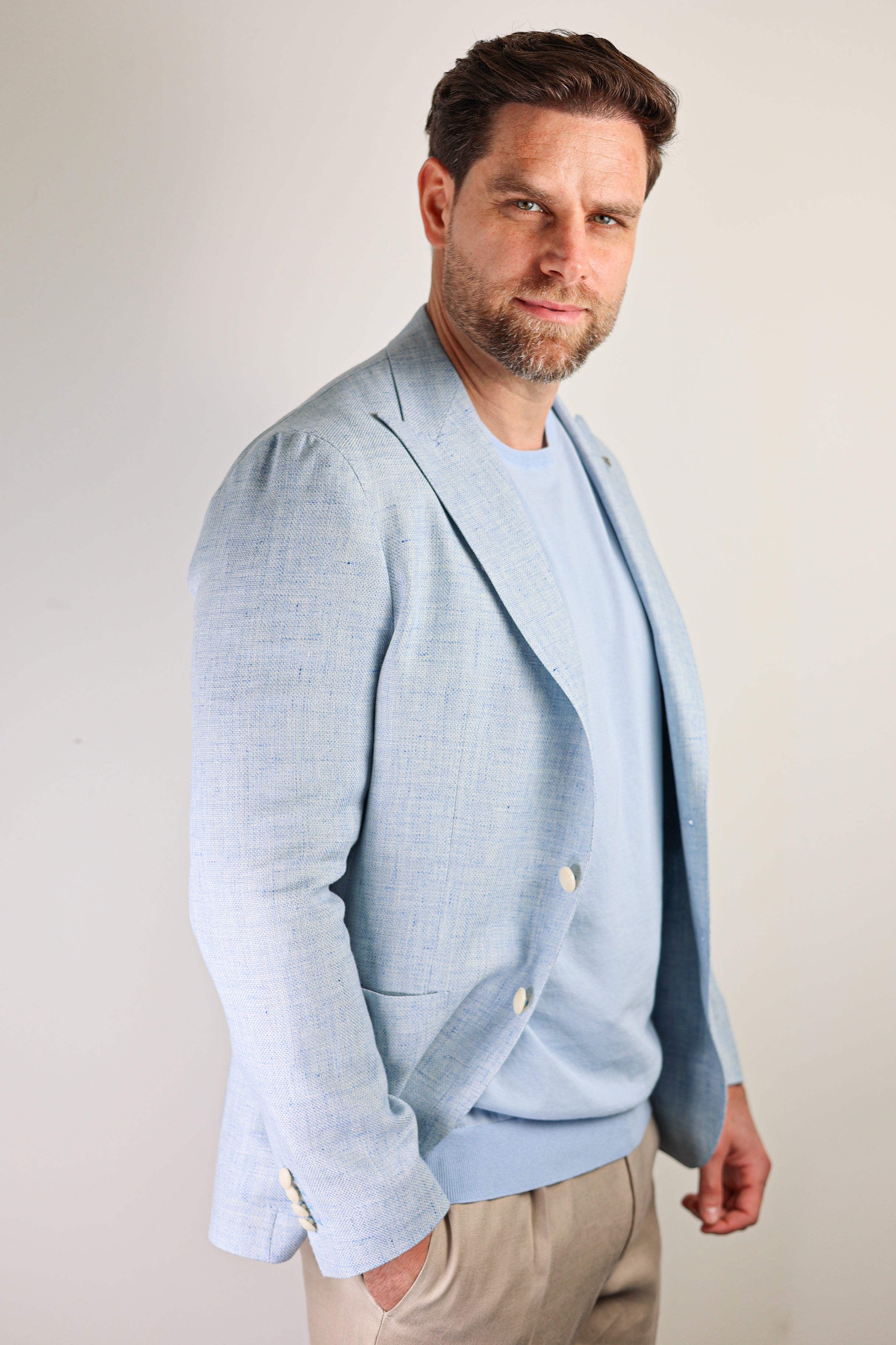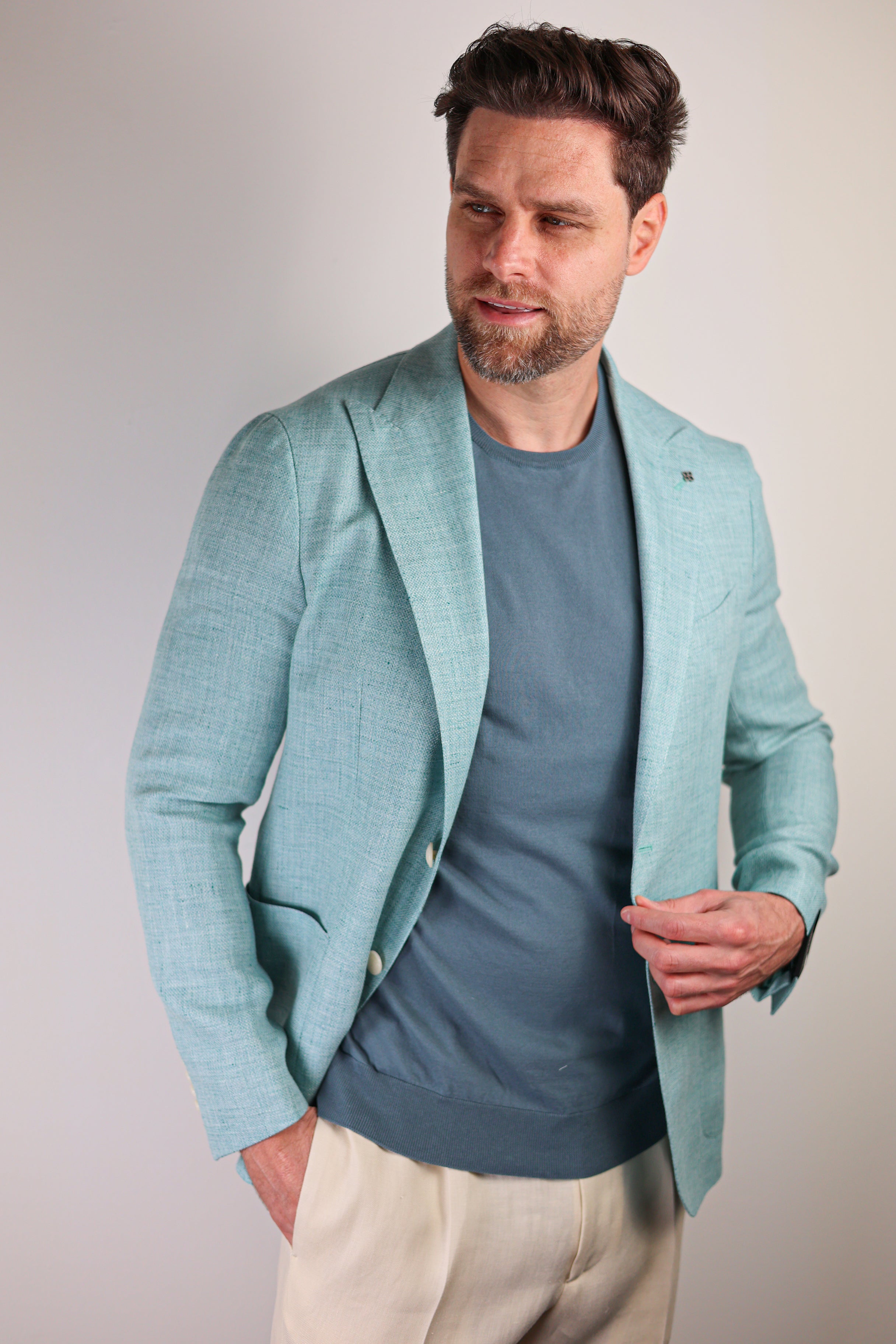 Montecarlo unlined jacket, single breasted 2 buttons, peak lapels, side vents, patch pockets - 60% LINEN 40% VIRGIN WOOL