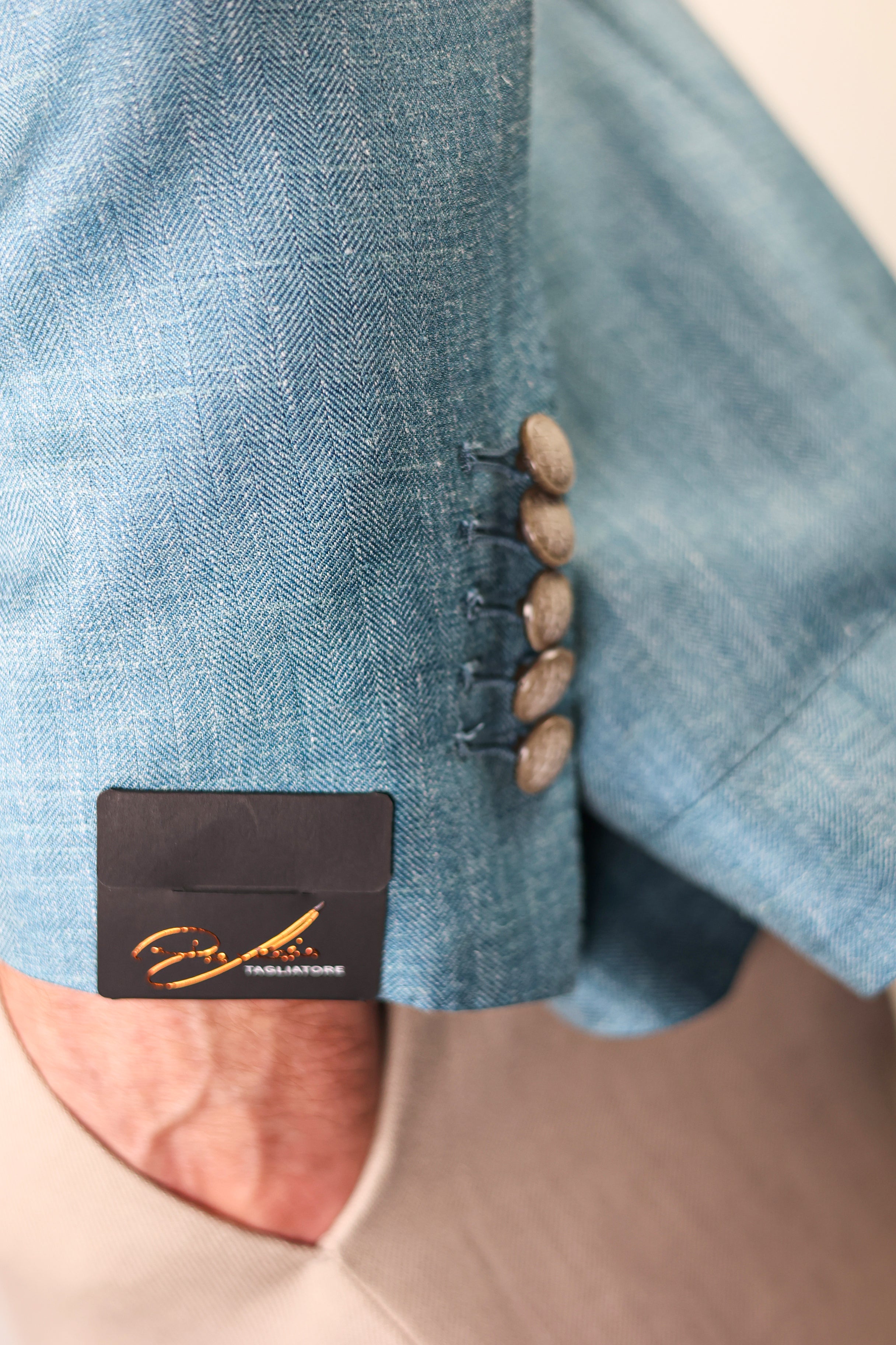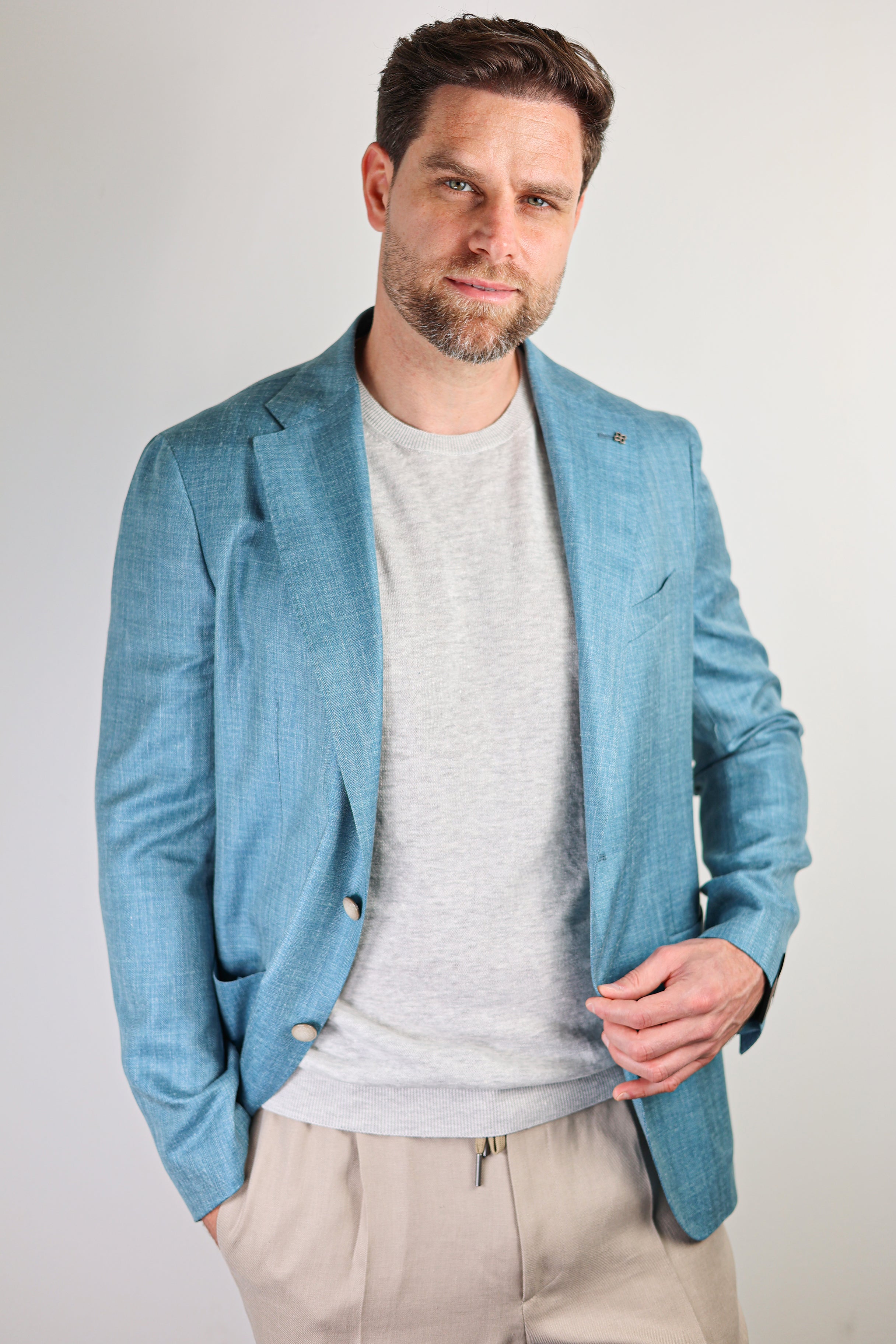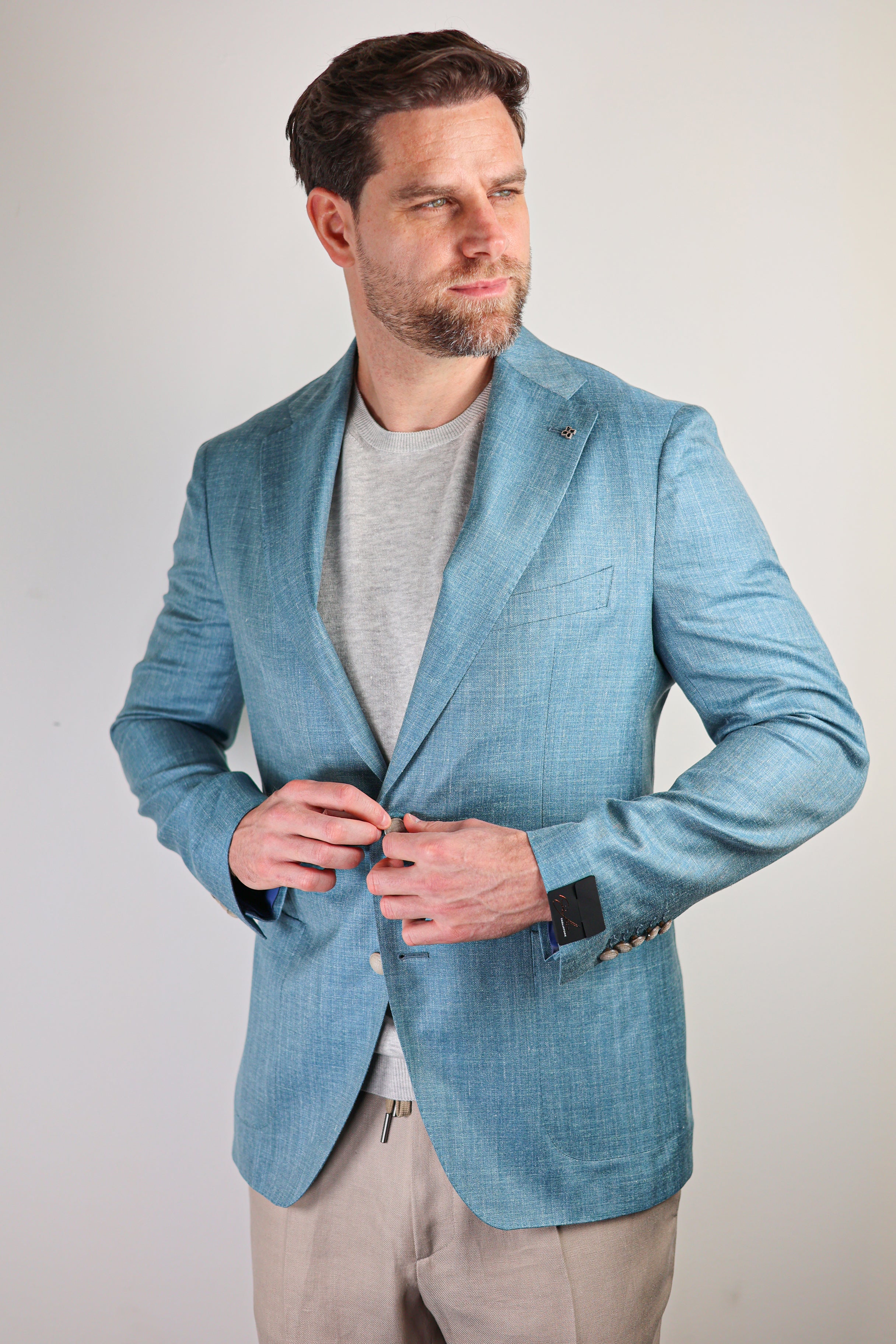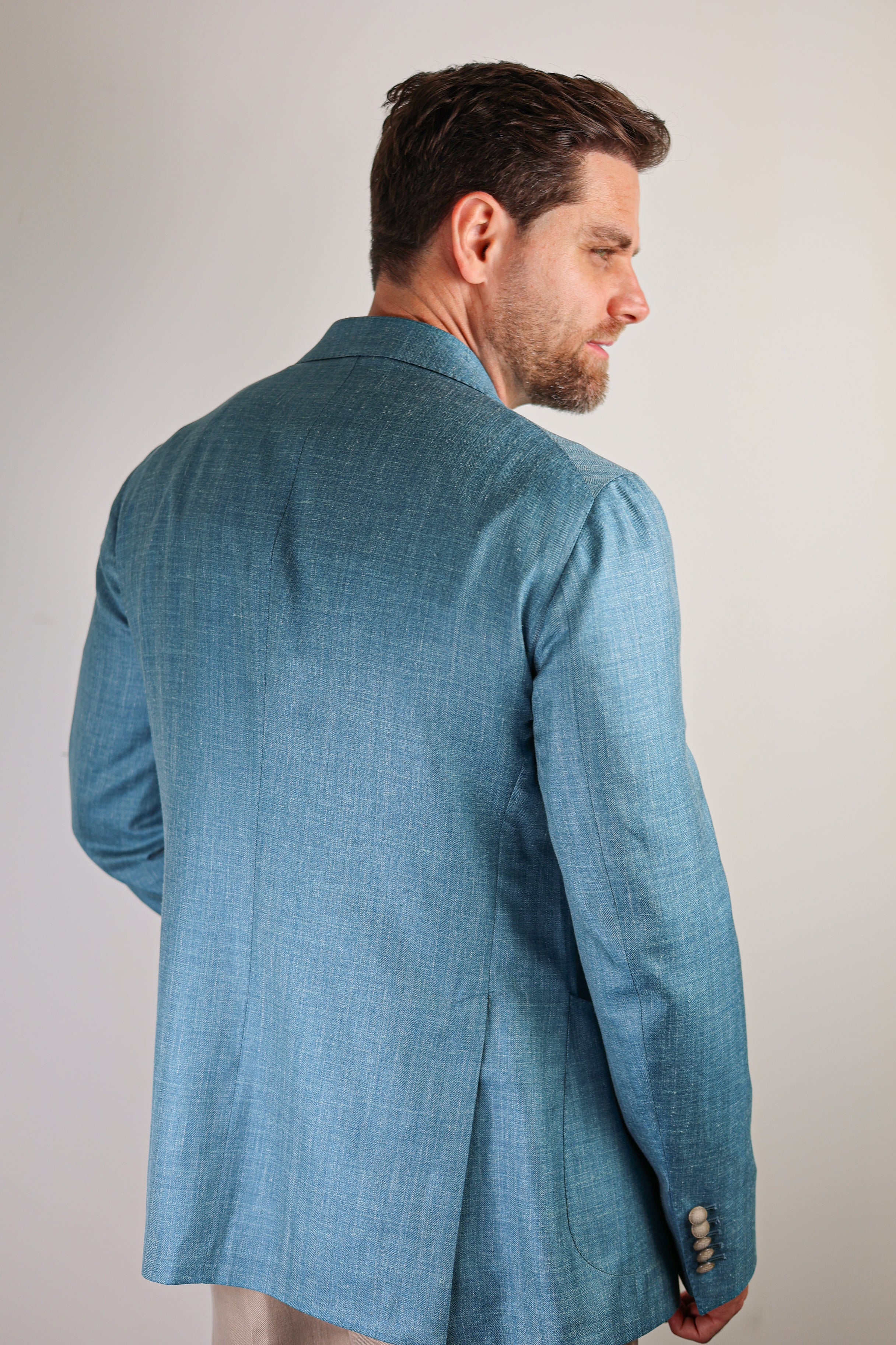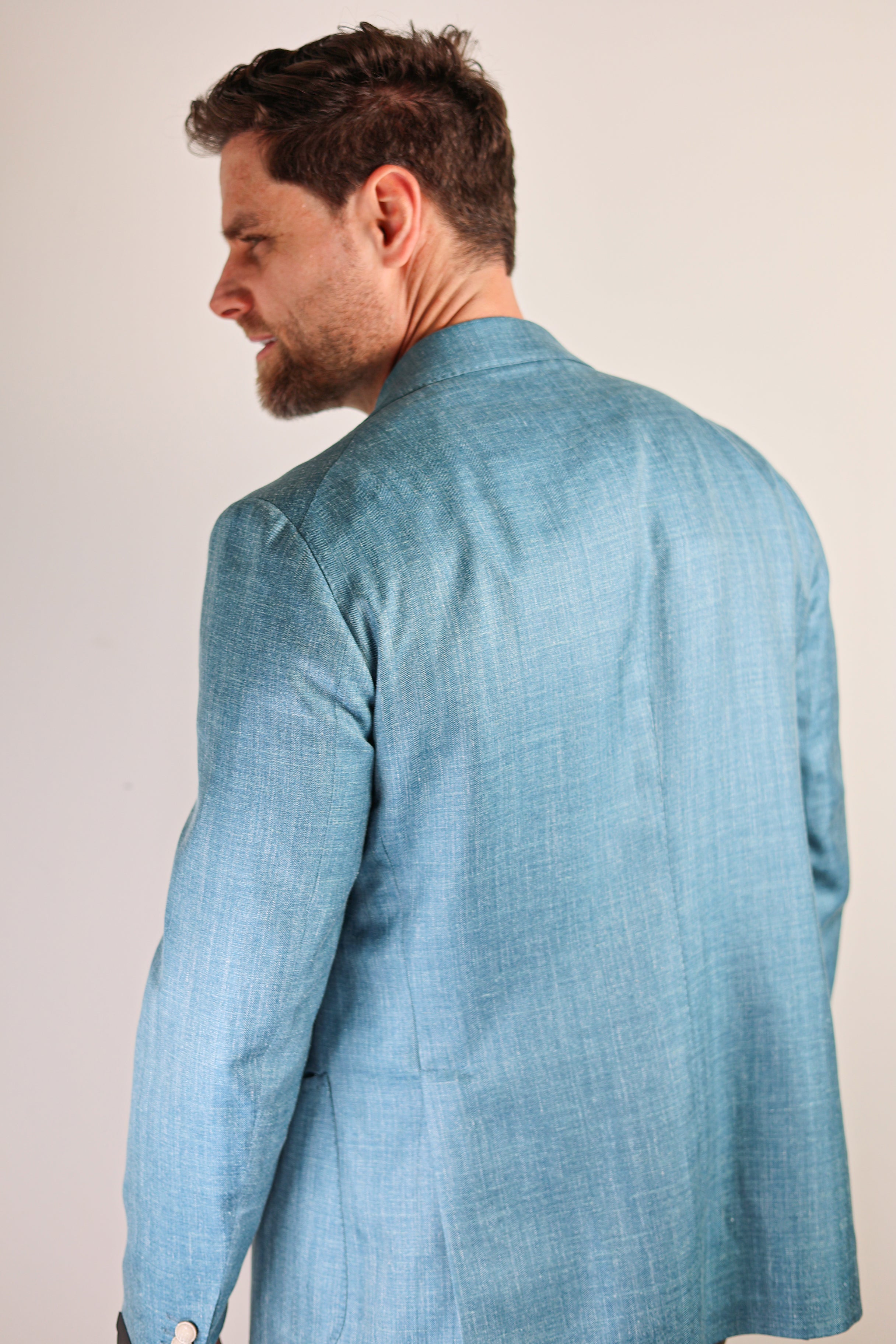 Oxford half lined jacket, single breasted 2 buttons, notch lapels, side vents, patch pockets - 49% VIRGIN WOOL 30% SILK 21% LINEN