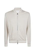 Bomber in mouliné linen knit. College-inspired garment with zip. Regular fit.