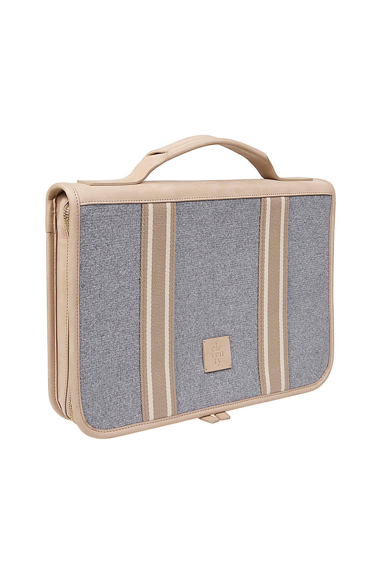 Bag for iPad and 13-inch laptop in aniline calfskin leather with gold-coloured hardware. The high-quality leather feels extremely soft to the touch. The inherent qualities of the material enhance its beauty and value. Height 25 cm, width 35 cm, depth 5 cm.