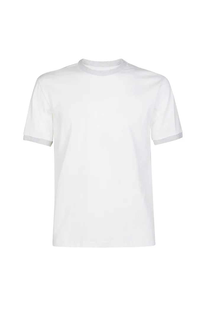 Crew-neck T-shirt made in a regular fit from Giza cotton jersey, celebrated for its exceptional strength, brilliance, and remarkable softness. A timeless classic for any man's wardrobe, enhanced with knitted details.