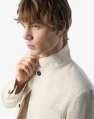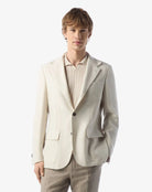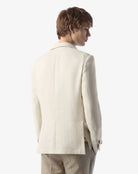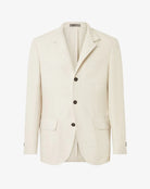 Made from linen and wool, this unlined, four-button ivory jacket features a relaxed fit. The fabric's coolness and temperature-balancing properties make it ideal for the summer. Its high wool content make it less prone to creasing than pure linen.