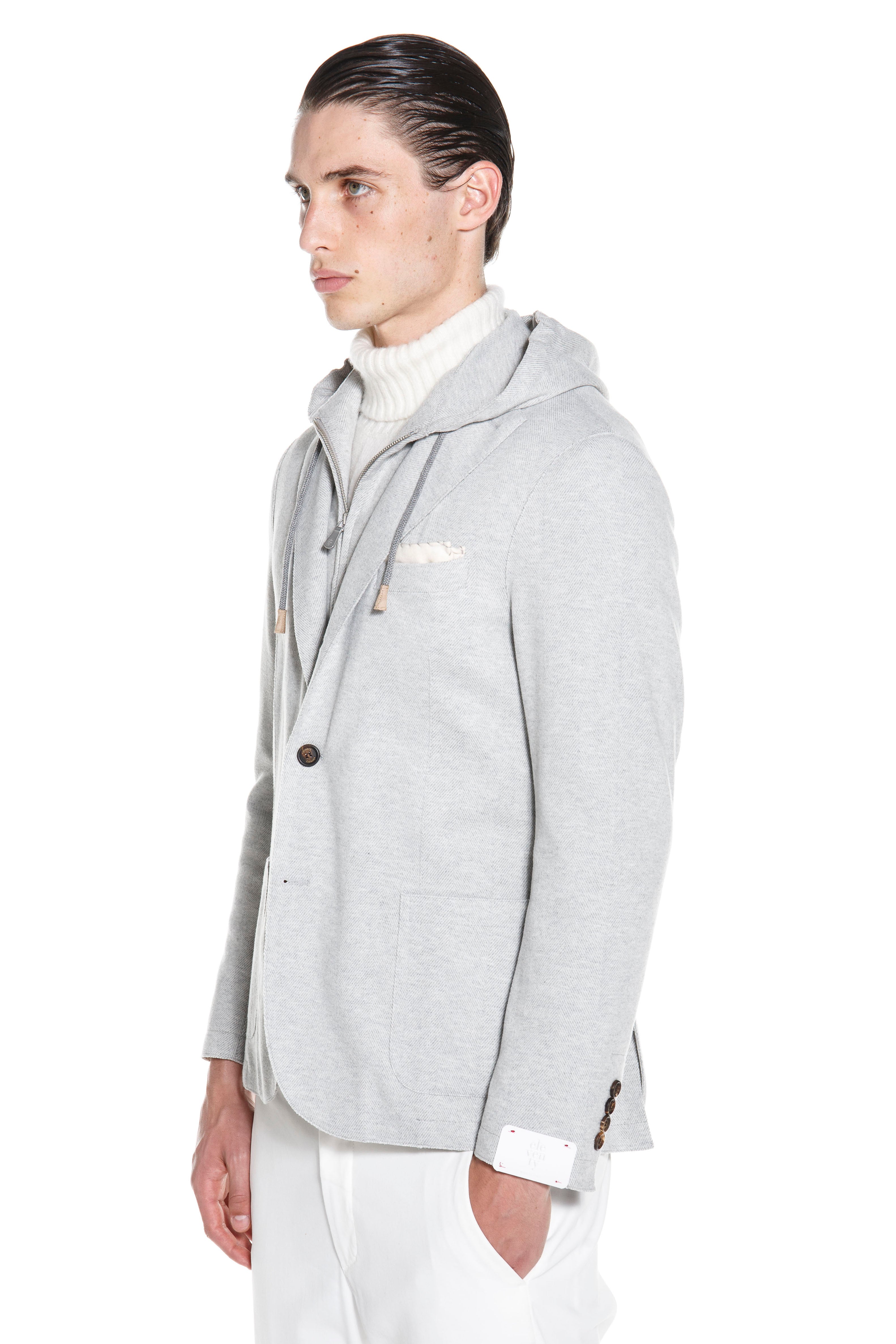 Jacket for men by Eleventy in light gray. The elegant single-breasted jacket proves thanks to the fine herringbone design and classic details as a timeless timeless companion for masculine looks, while the pleasant material blend ensures a soft feel. soft feel. At the same time, the removable placket adds a sporty touch. touch.
