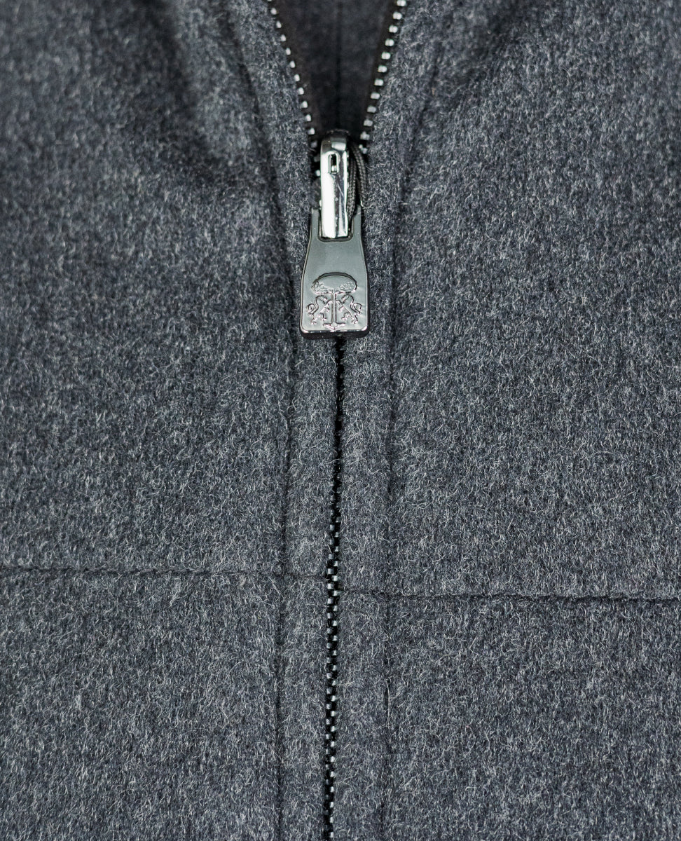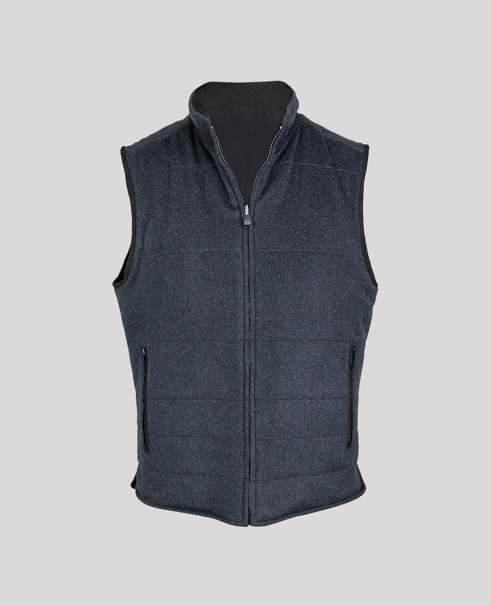 The micro patterned wool gilet is a versatile, classy garment, perfect for those seeking both comfort and style. Reversible and wadding-padded, this garment combines soft warmth with functional technical details.