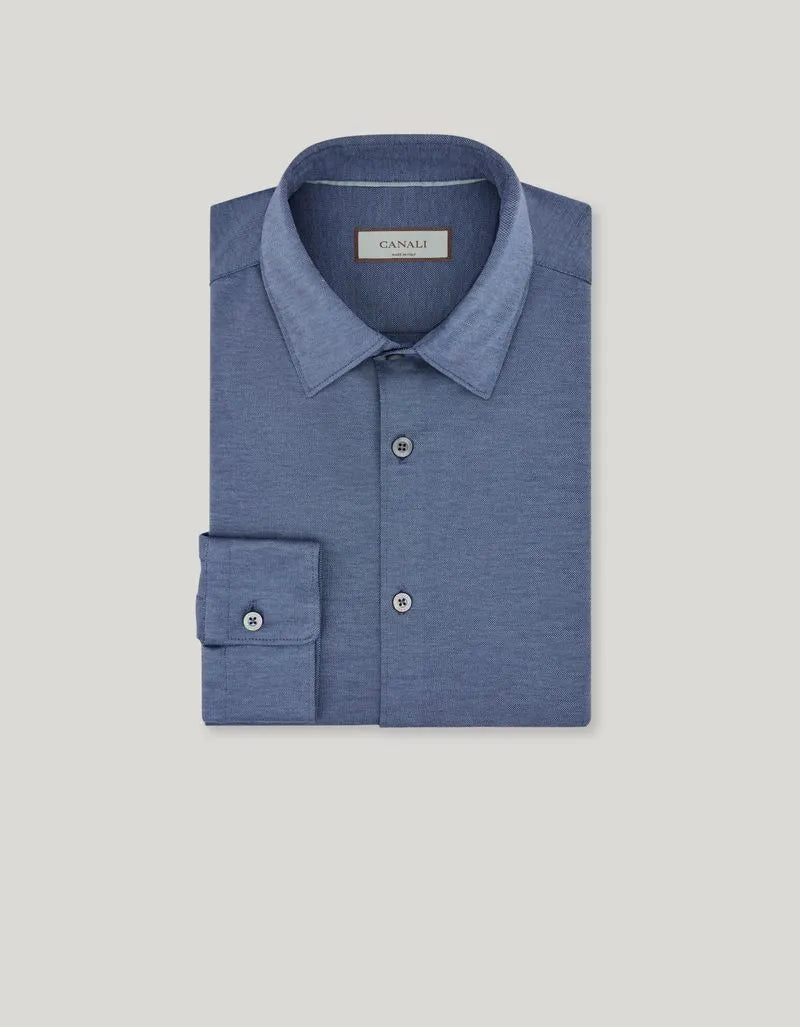 Casual shirt, regular fit, in cotton and lyocell jersey with a narrow pointed collar and front pleat. Exceptional softness and innovative texture provide comfort and modern style, making it ideal for dynamic smart-casual looks.