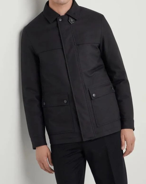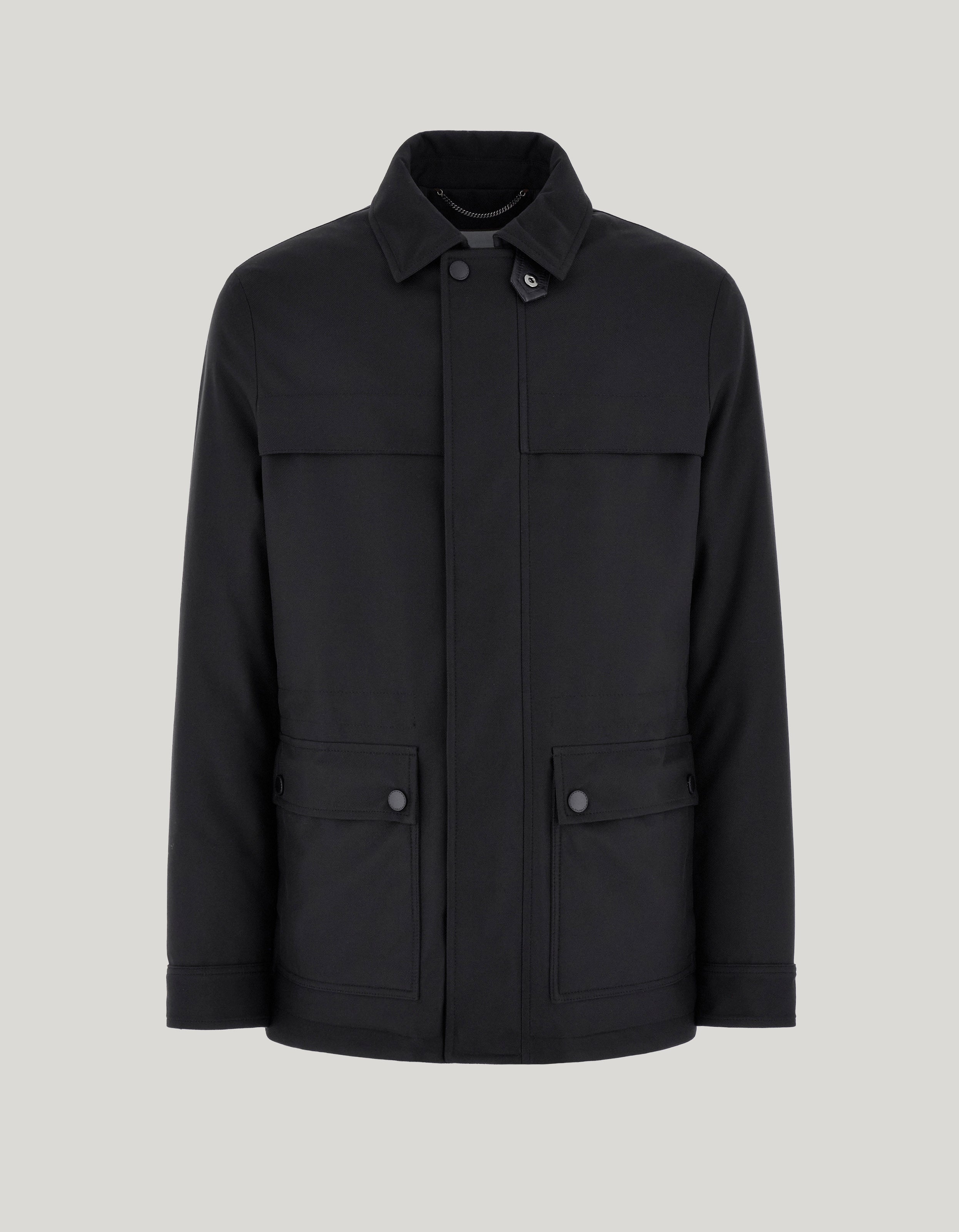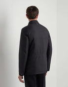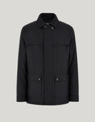 Field jacket with functional elegance, made of micro-structured technical fabric with membrane and genuine down padding. Leather details and double pocket entry enhance its practicality and character. Designed to offer protection and comfort on rainy or windy days, it is the ideal choice for tackling the city in style.
