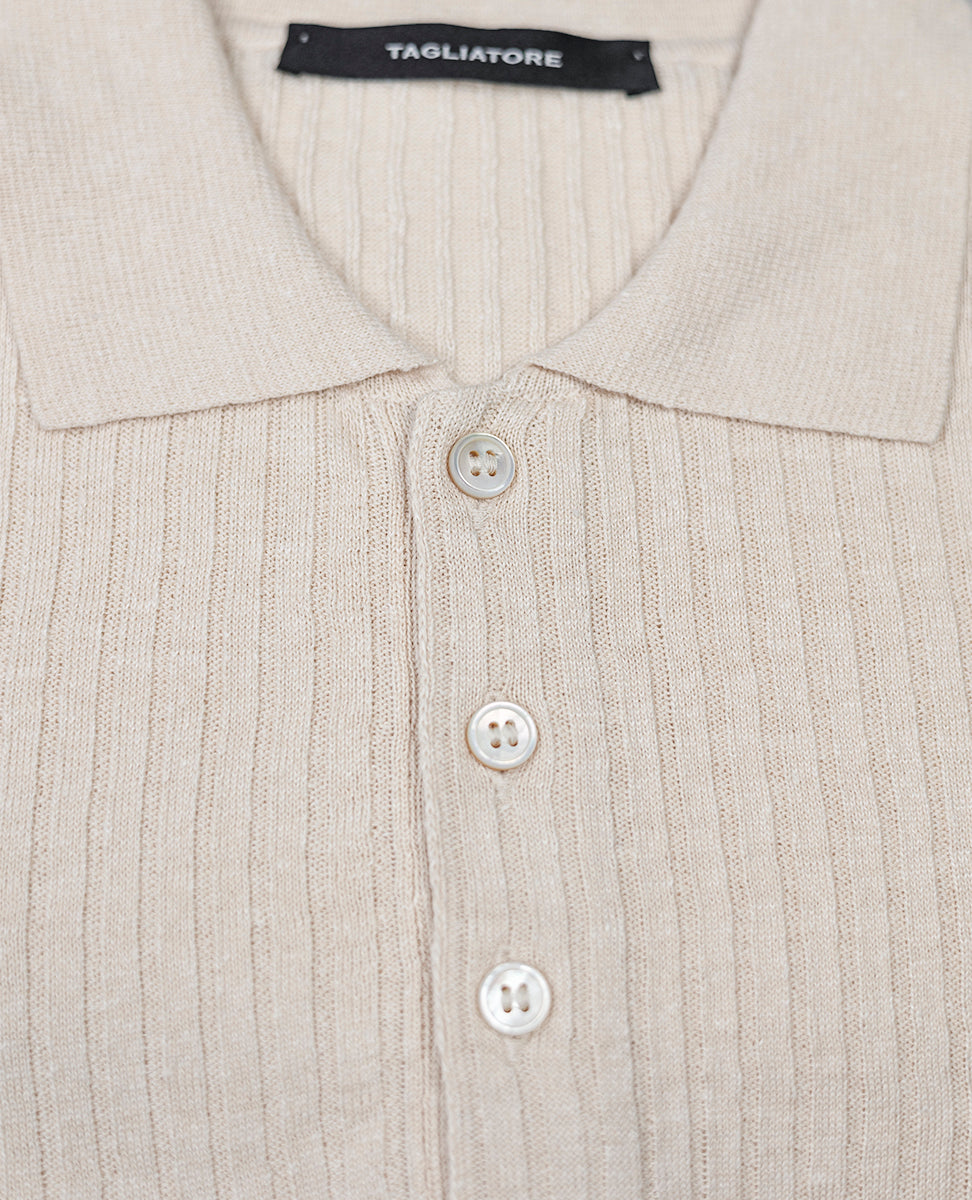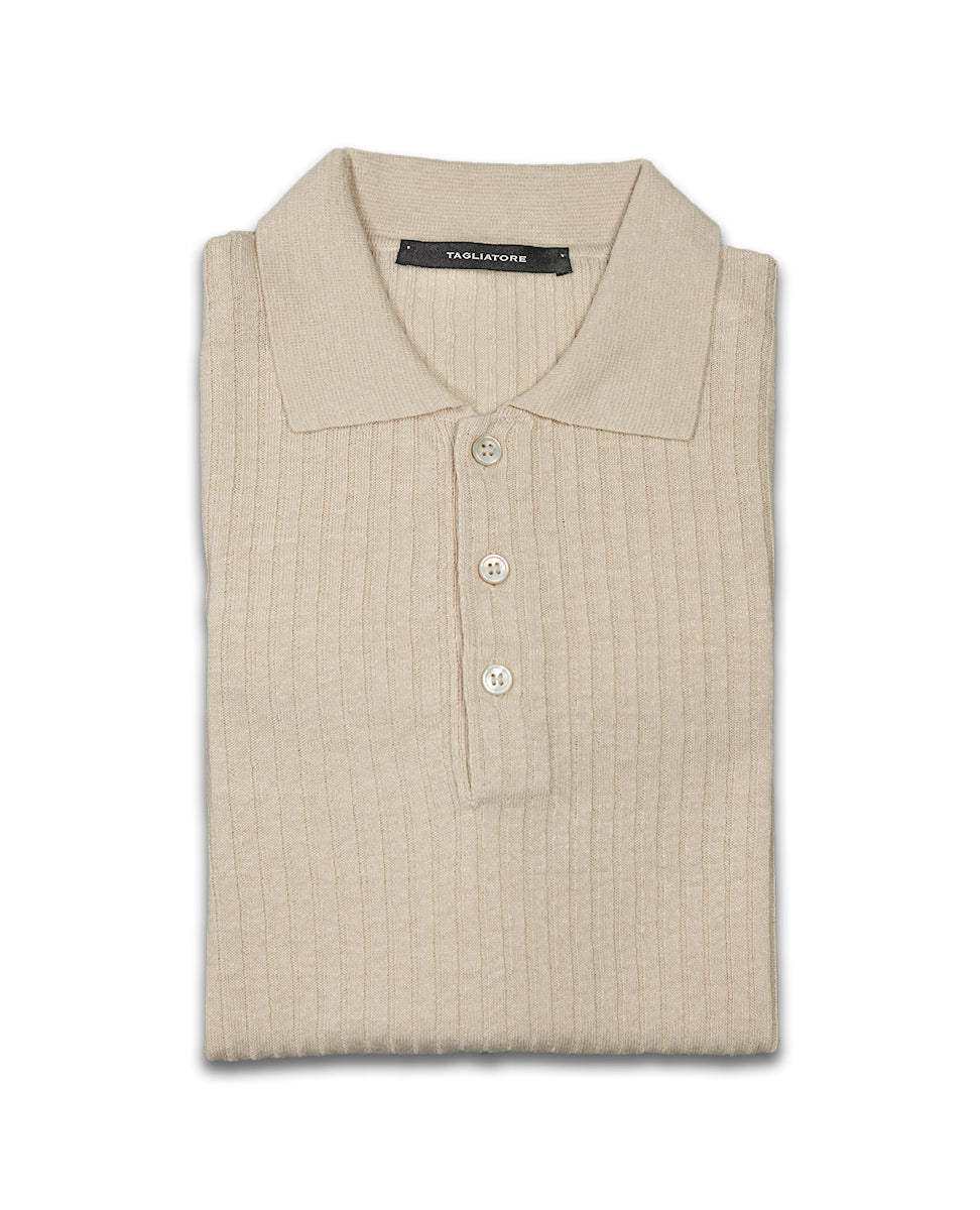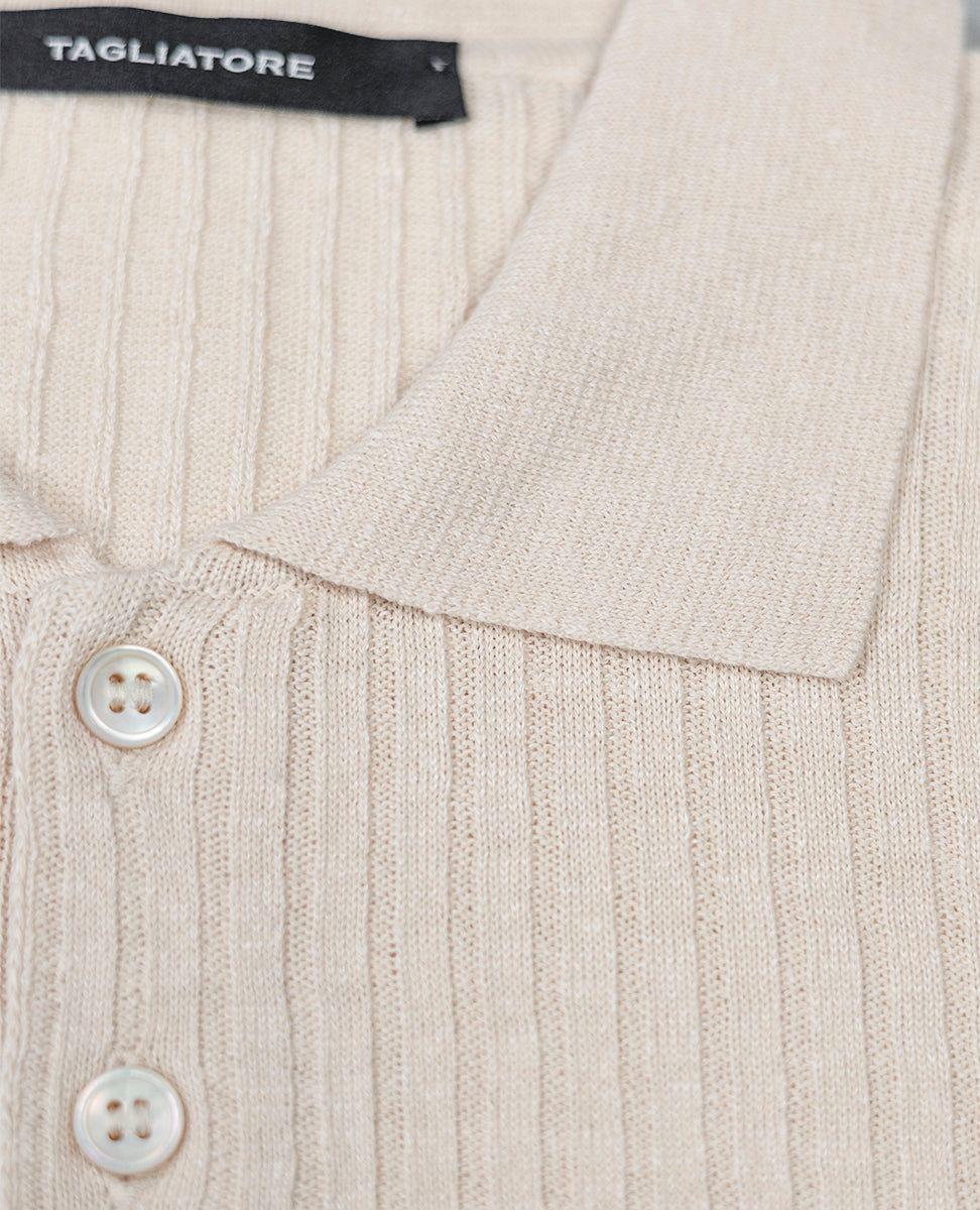 Ribbed Knit Polo Shirt
