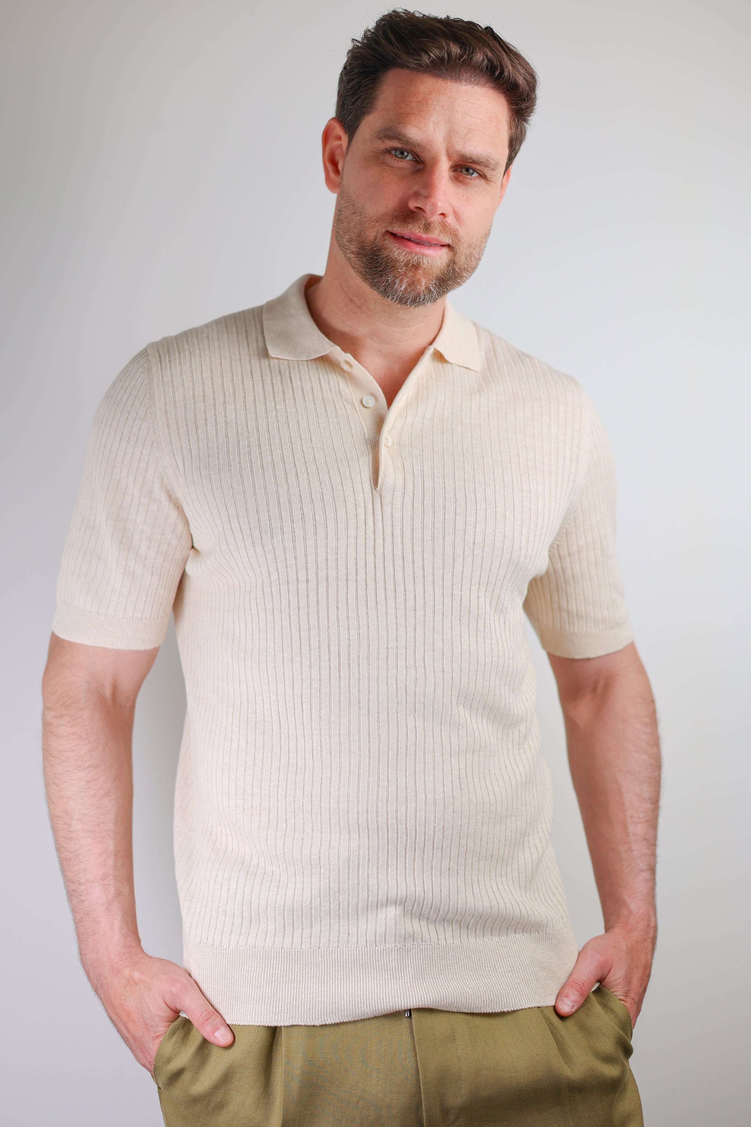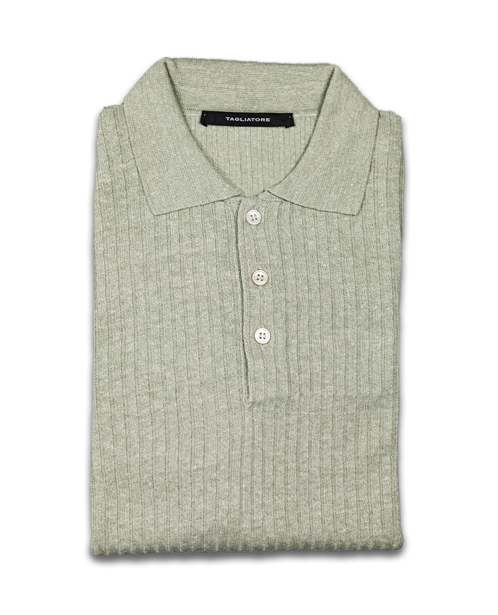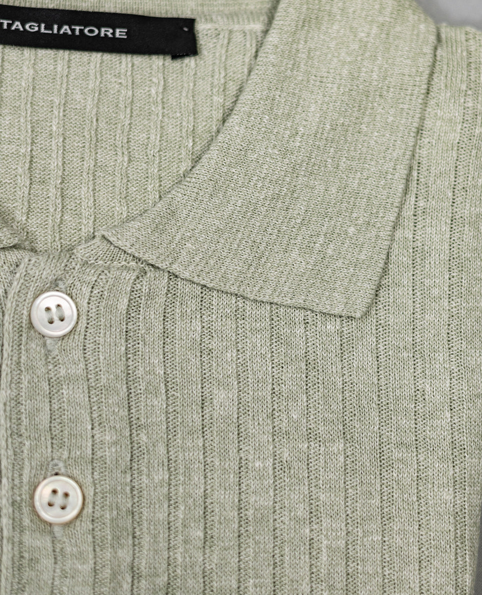Ribbed Knit Polo Shirt