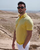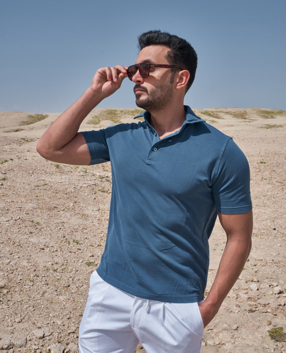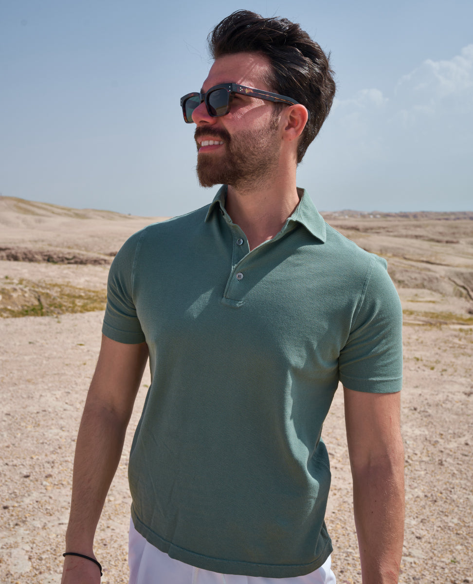Must have in the men's summer wardrobe. Knitted polo shirt with visible drop and tubular bottom. A modern fit completes the stylistic proposal.