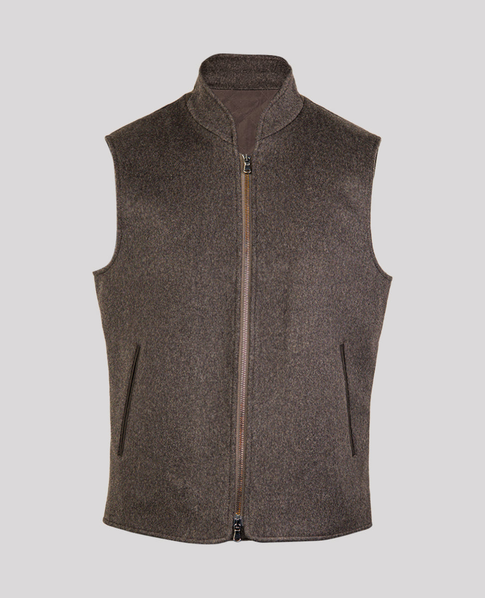 Men's Vest in Loro Piana Fabric prized for its unparalleled softness, exceptional warmth, and smooth, silky luster, this luxurious Italian-made fabric is crafted from pure wool. Under a jacket or over a knit, this handsome zip vest is a luxurious - thanks to its ultra soft cashmere - and versatility way to add a subtle touch of functional elegance to any look.