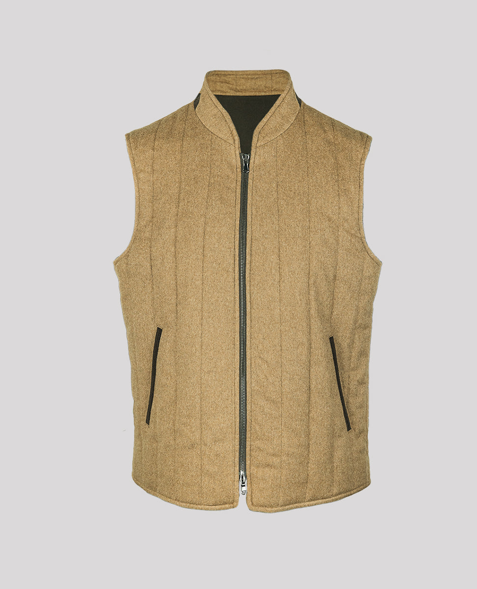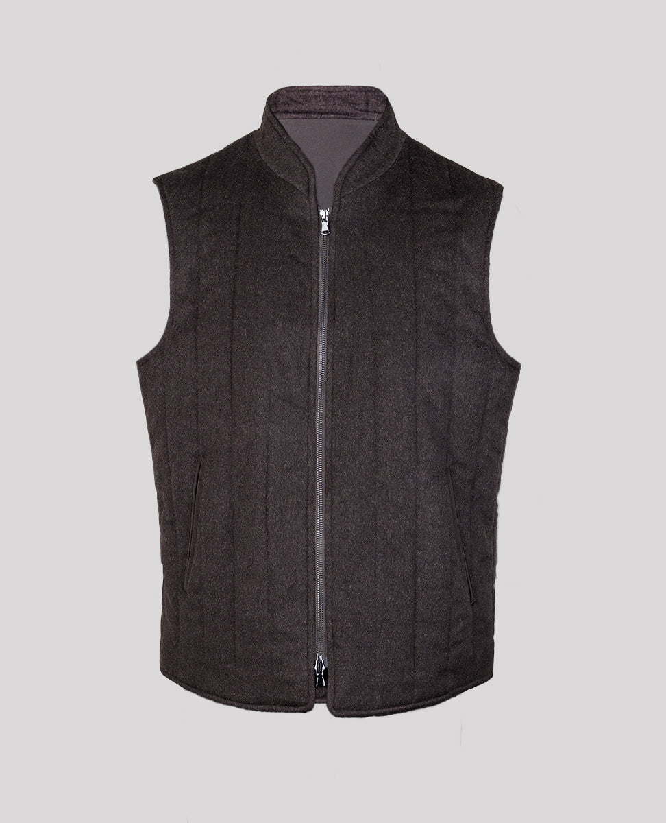 Men's Vest in Loro Piana Fabric prized for its unparalleled softness, exceptional warmth, and smooth, silky luster, this luxurious Italian-made fabric is crafted from pure Cashmere. Under a jacket or over a knit, this handsome zip vest is a luxurious - thanks to its ultra soft cashmere - and versatility way to add a subtle touch of functional elegance to any look.