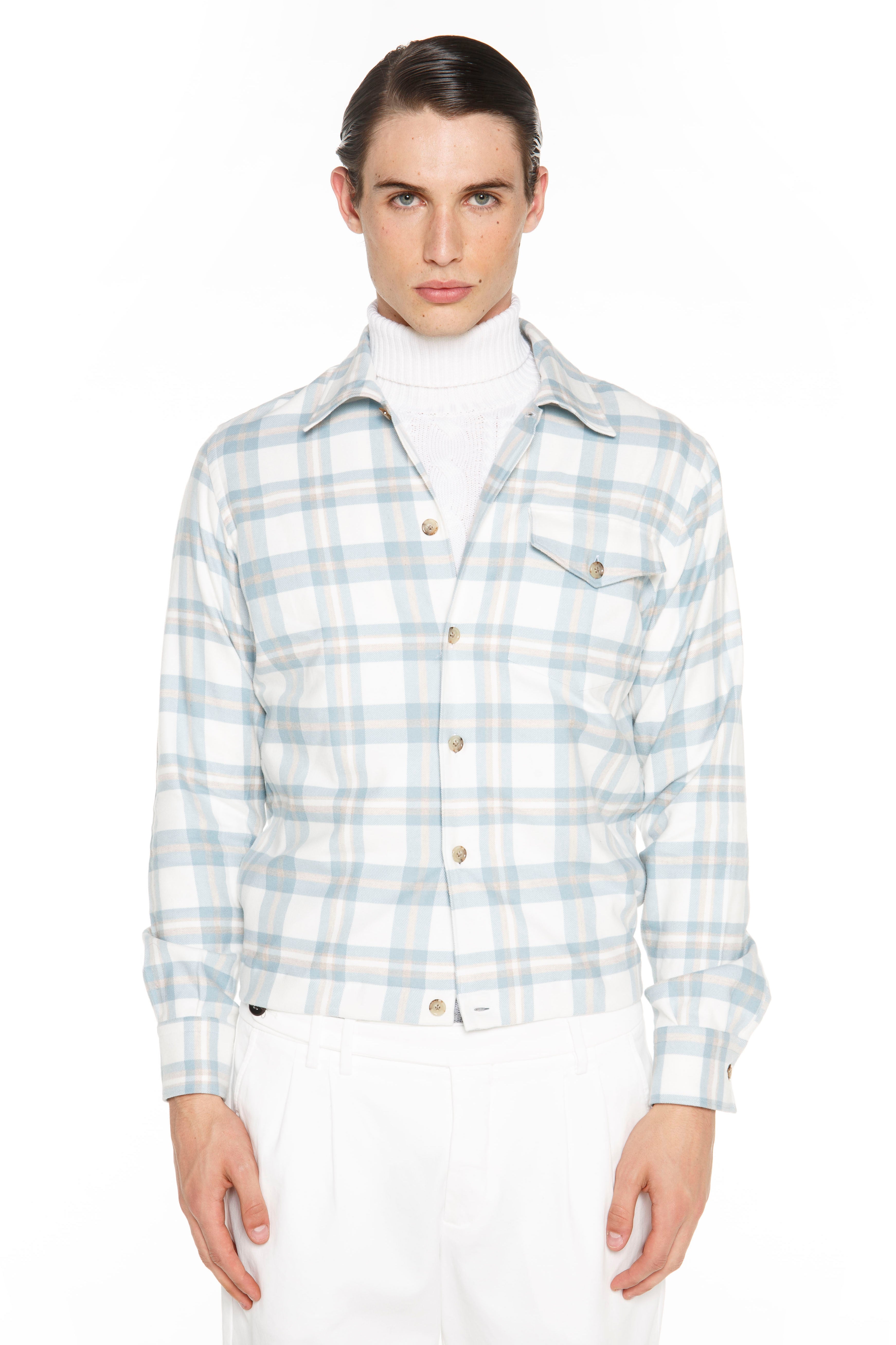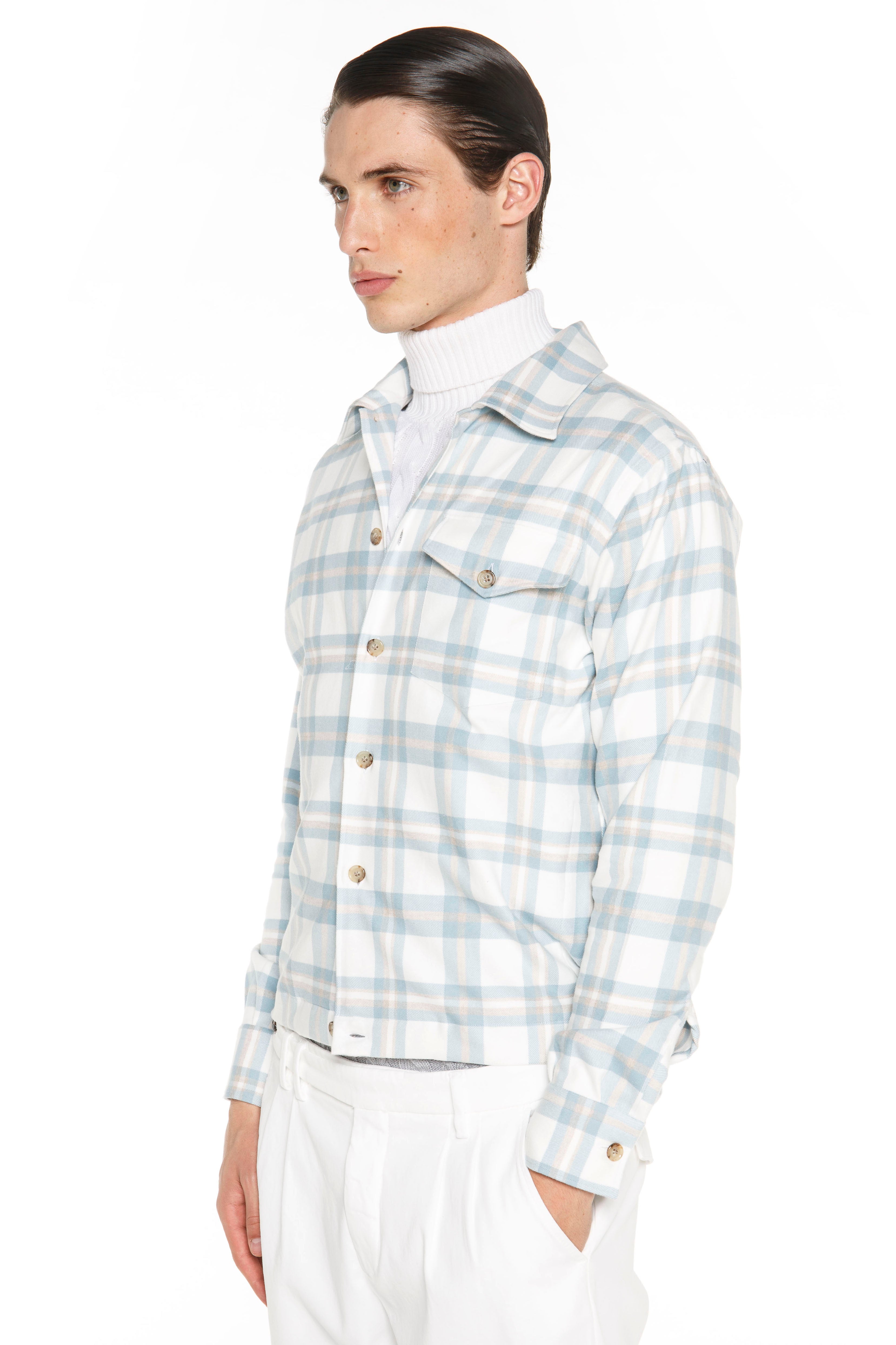The over-shirt with pocket is made of brushed cotton by Albini, with a wales pattern exclusively designed for Eleventy. The raising on both sides occurs through a particular finishing, which raises the fibers of the fabric, making it soft and with a warm, soft feel.