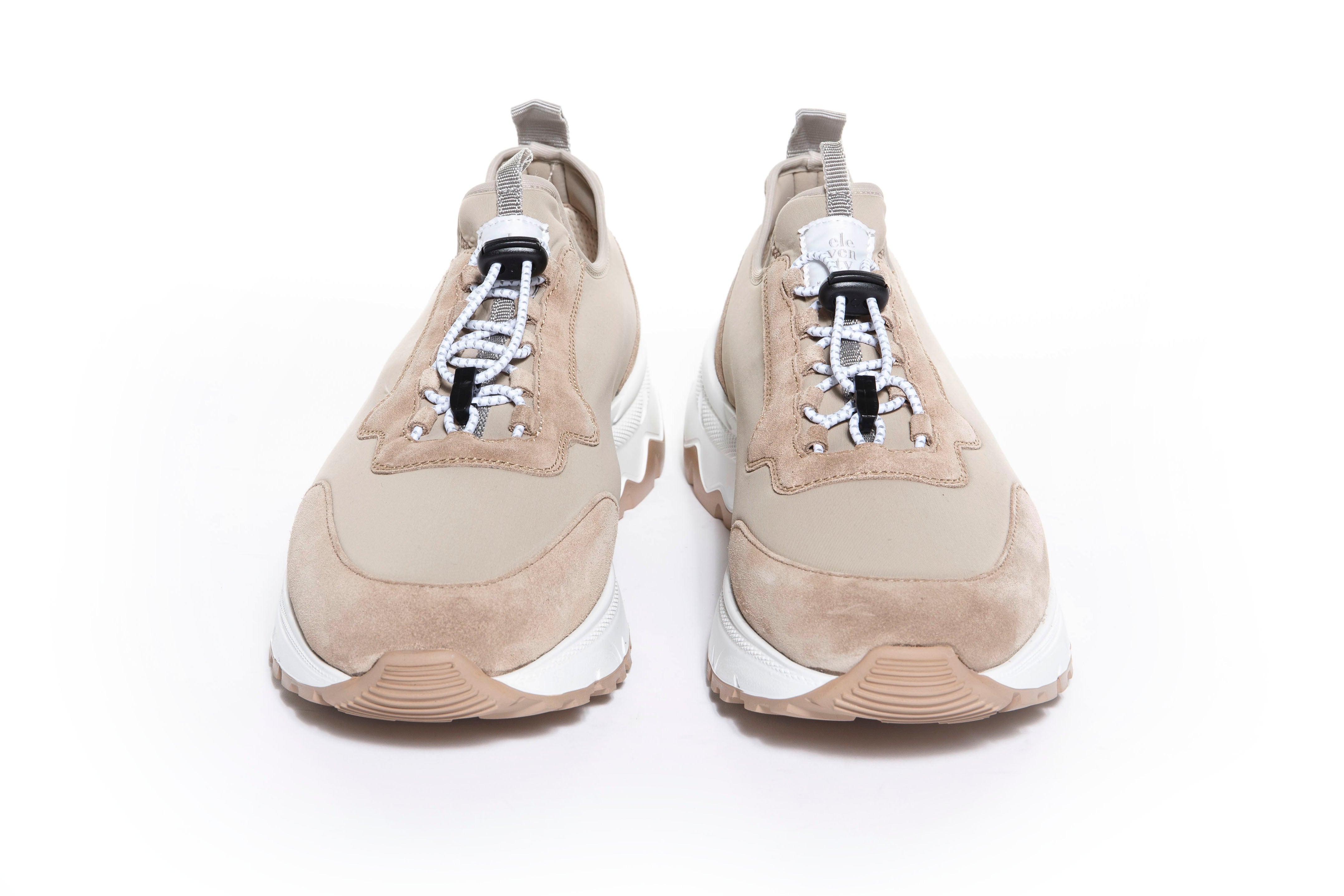 suede profiles. The laces are flat in cotton. The sole, an exclusive