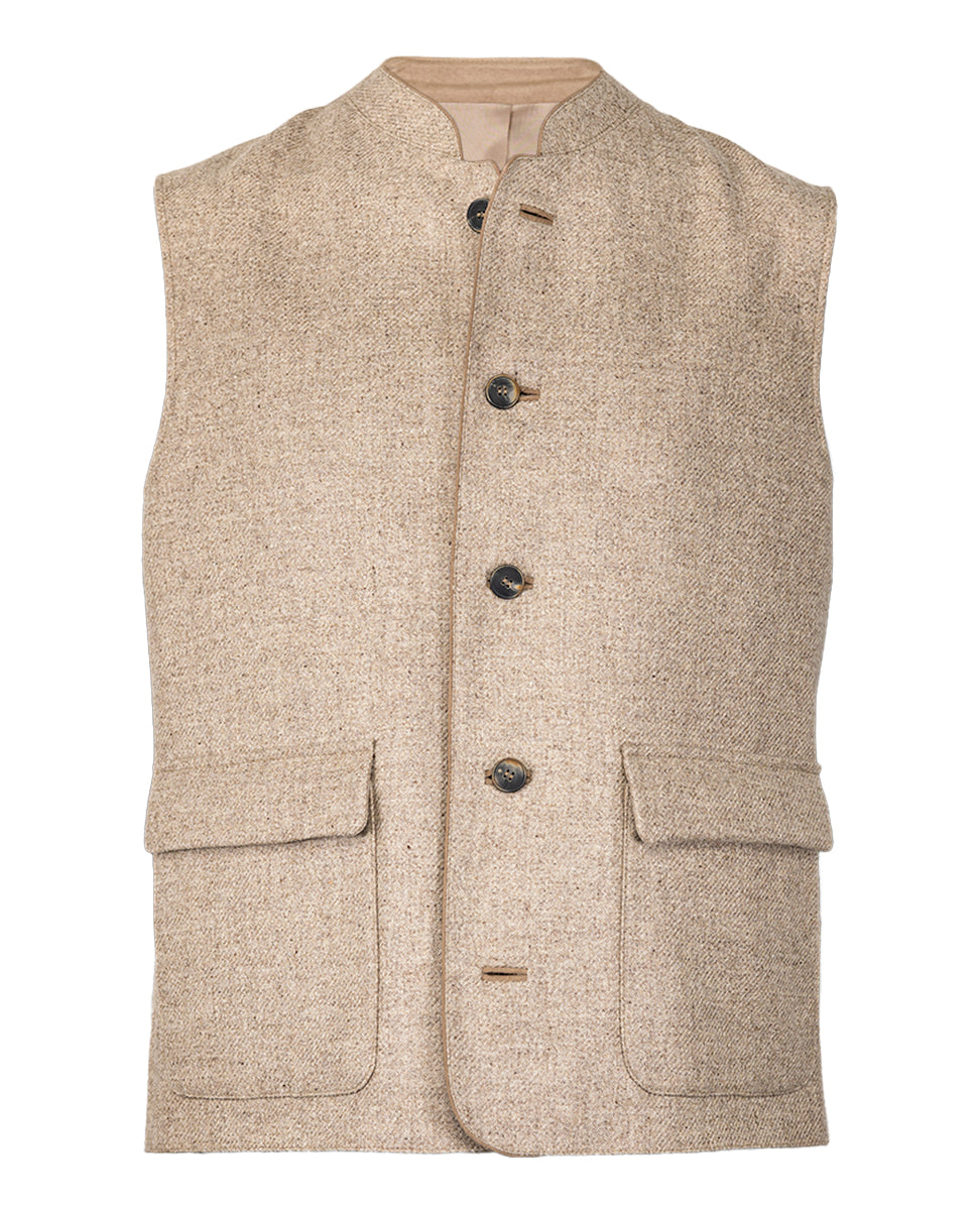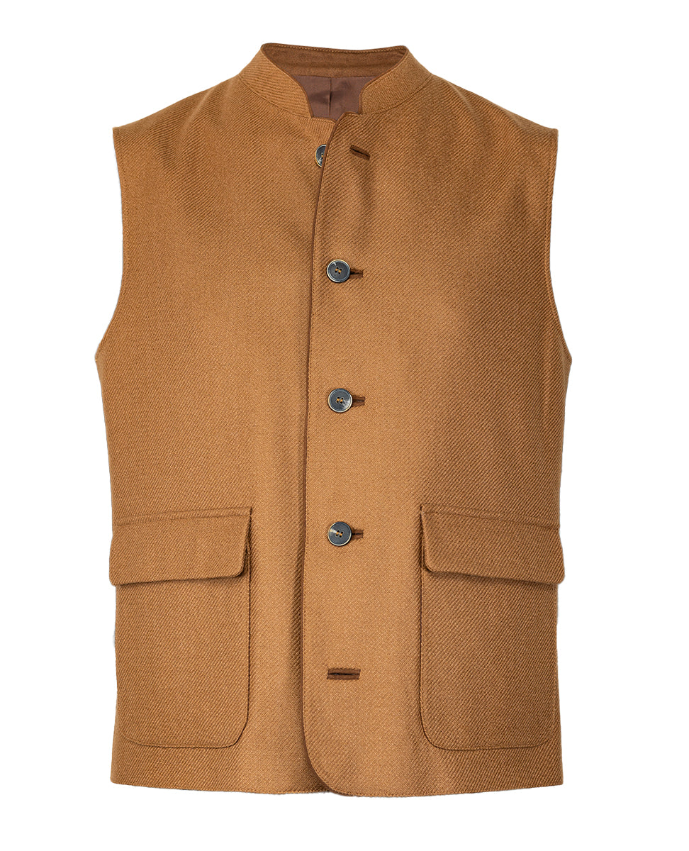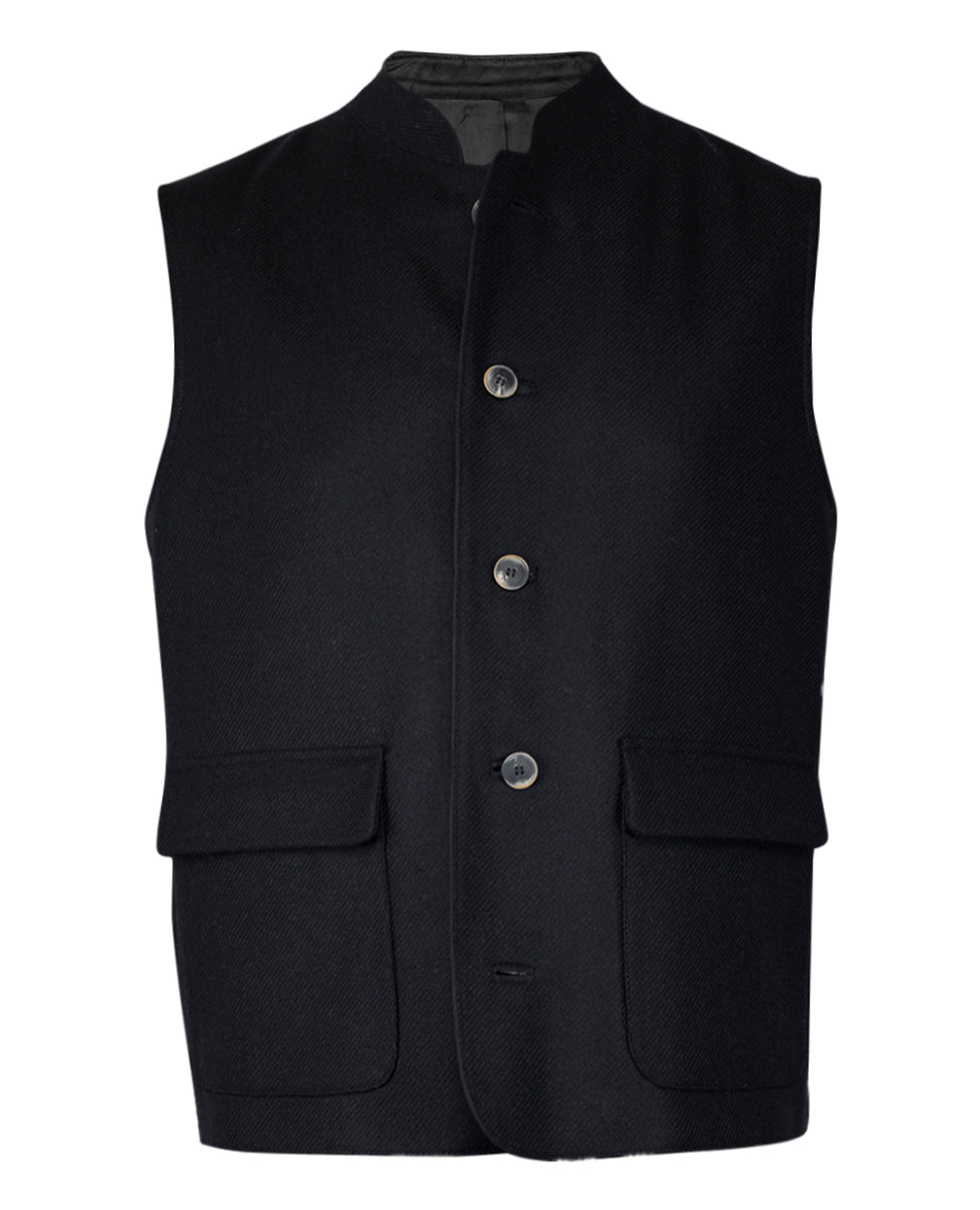 The Vest is ideal for layering on colder days. High neck, Front button, Sleeveless, Two side slit pockets,  it's fully lined and has a regular fit that will easily button over shirts or fine knits.