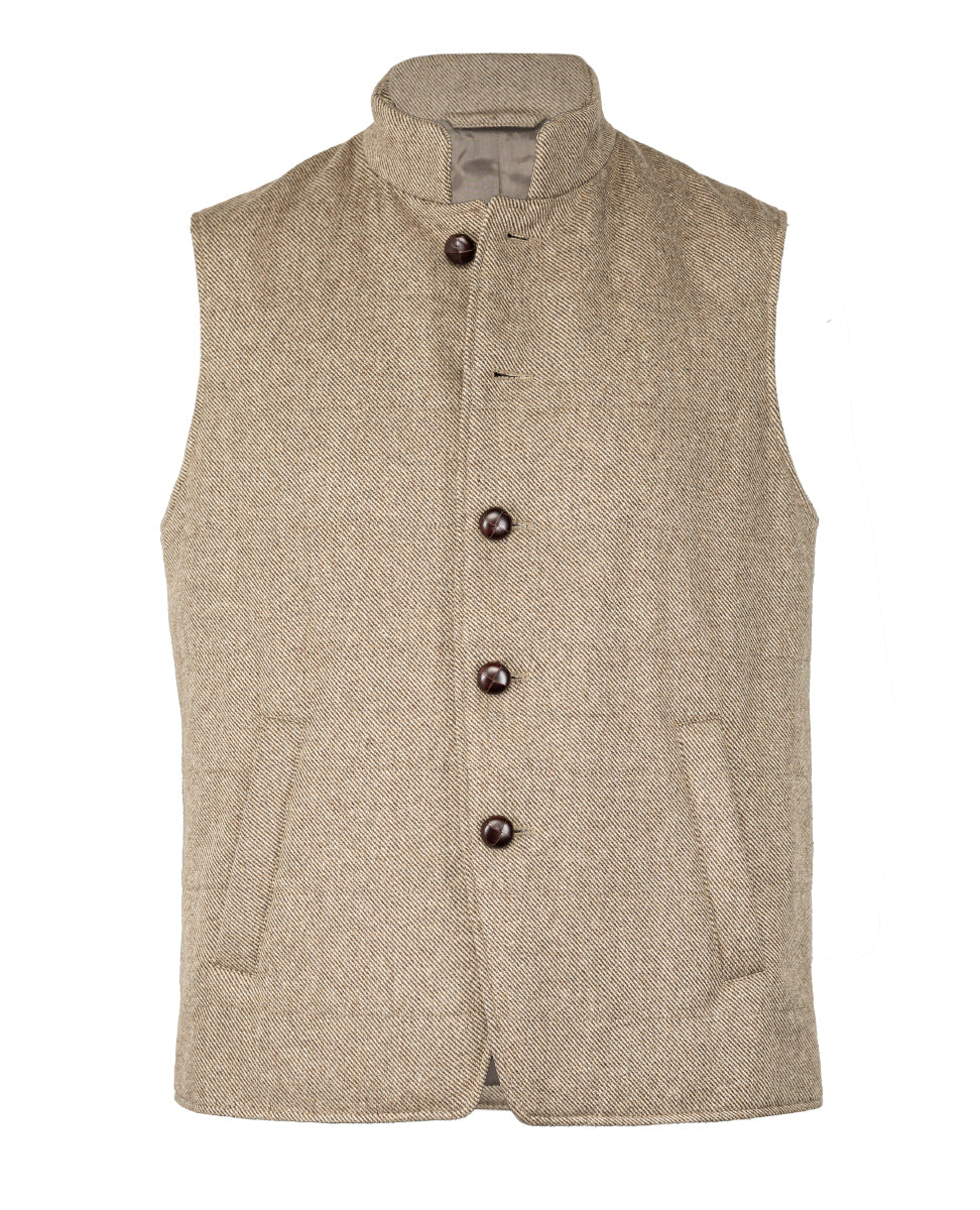 The Vest is ideal for layering on colder days. High neck, Front button, Sleeveless, Two side slit pockets, it's fully lined and has a regular fit that will easily button over shirts or fine knits.
