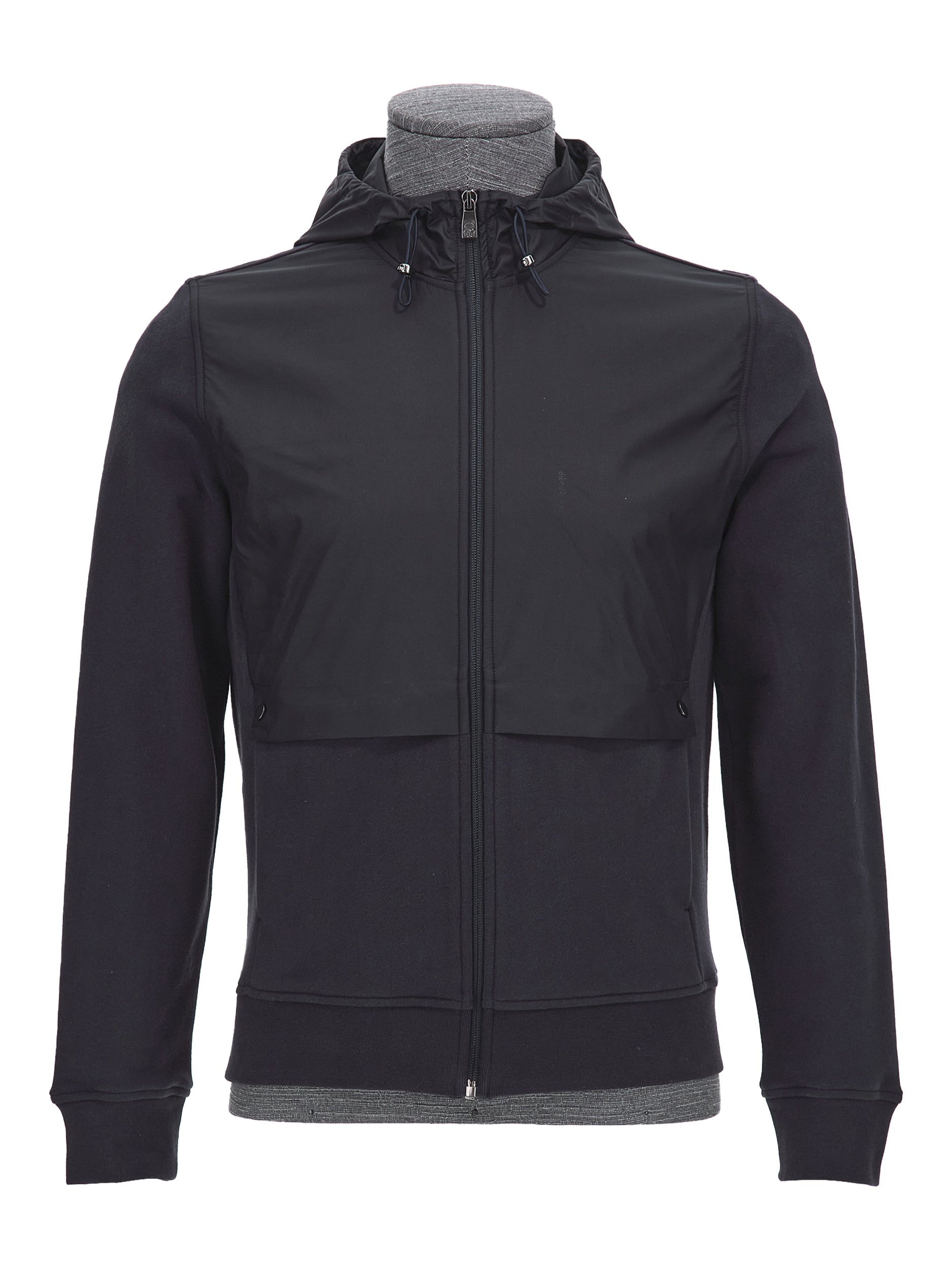 Craftsmanship, durability and comfort. The brand's expertise regarding materials and creative instinct give rise to the 'Style & Freedom Project' capsule collection and the introduction of new elements that fully express Corneliani's casual and sporty spirit. This brushed and carbon frosted hoodie feels extraordinarily soft and ultra-comfy.