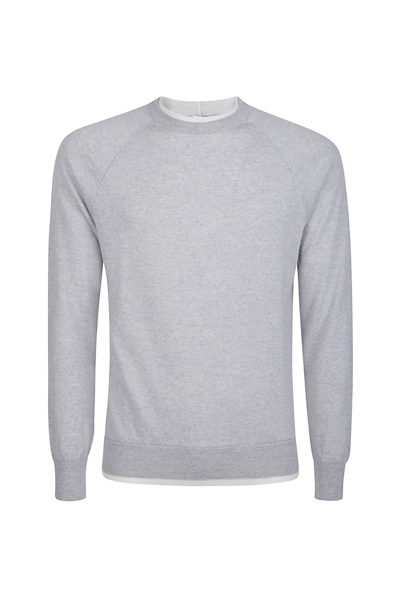 Eleventy men's wool sweater , white with contrasting color profiles, long sleeves, crew neck, ribbed edges with overlapping fabric construction, regular fit.