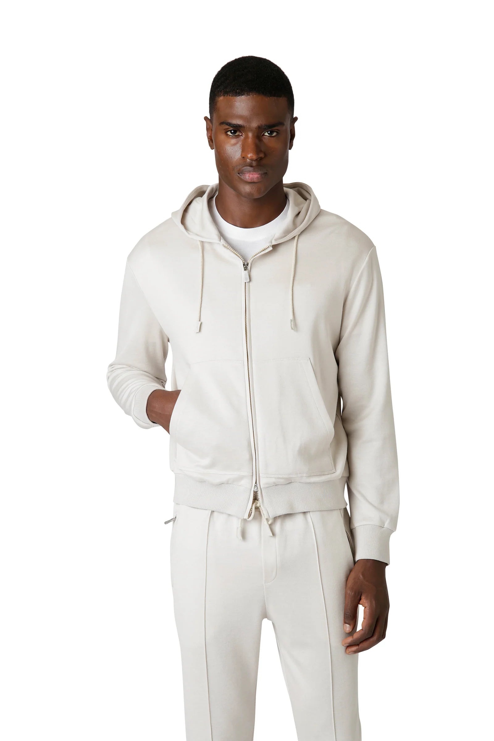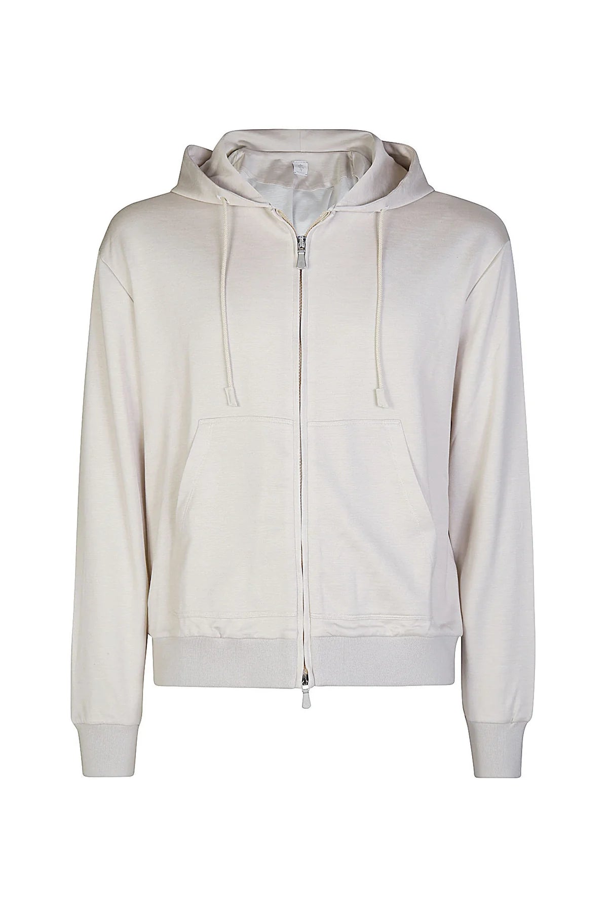 Sweatshirt with regular fit, made of silk-cotton jersey. Exuding a sporty vibe, this piece comes with a zip fastening, drawstring hood and Alcantara stoppers.