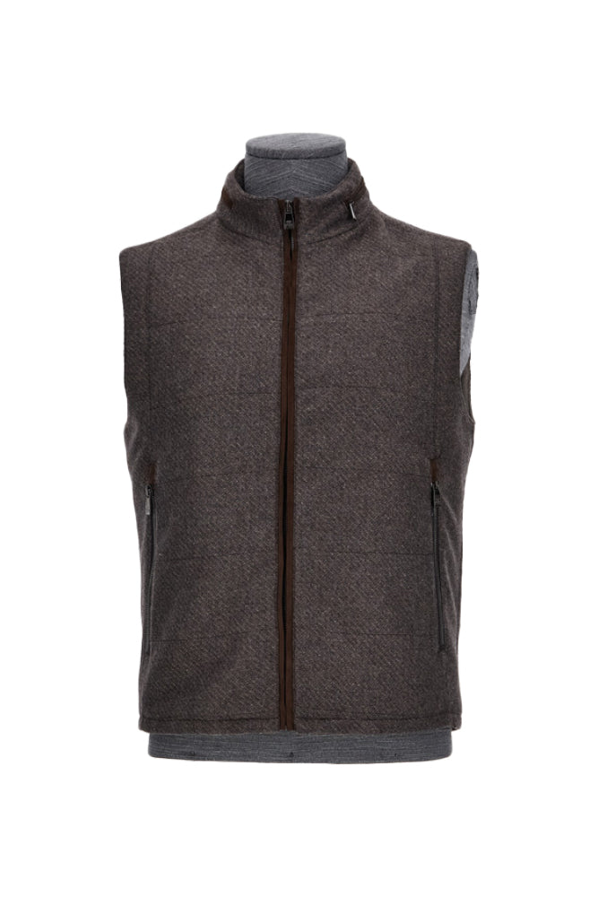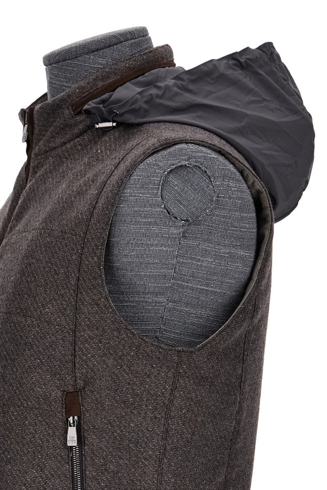 The brand's vocation to favour quality fabrics makes wool one of the star yarns in the new Fall Winter collection. This style of waistcoat features a quilted front and a zip fastening. Featuring a hood with adjustable drawstring and a quilted horizontal striped lining in pure wool, it is a must-have wardrobe staple for the Corneliani man