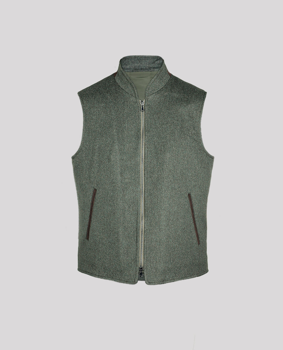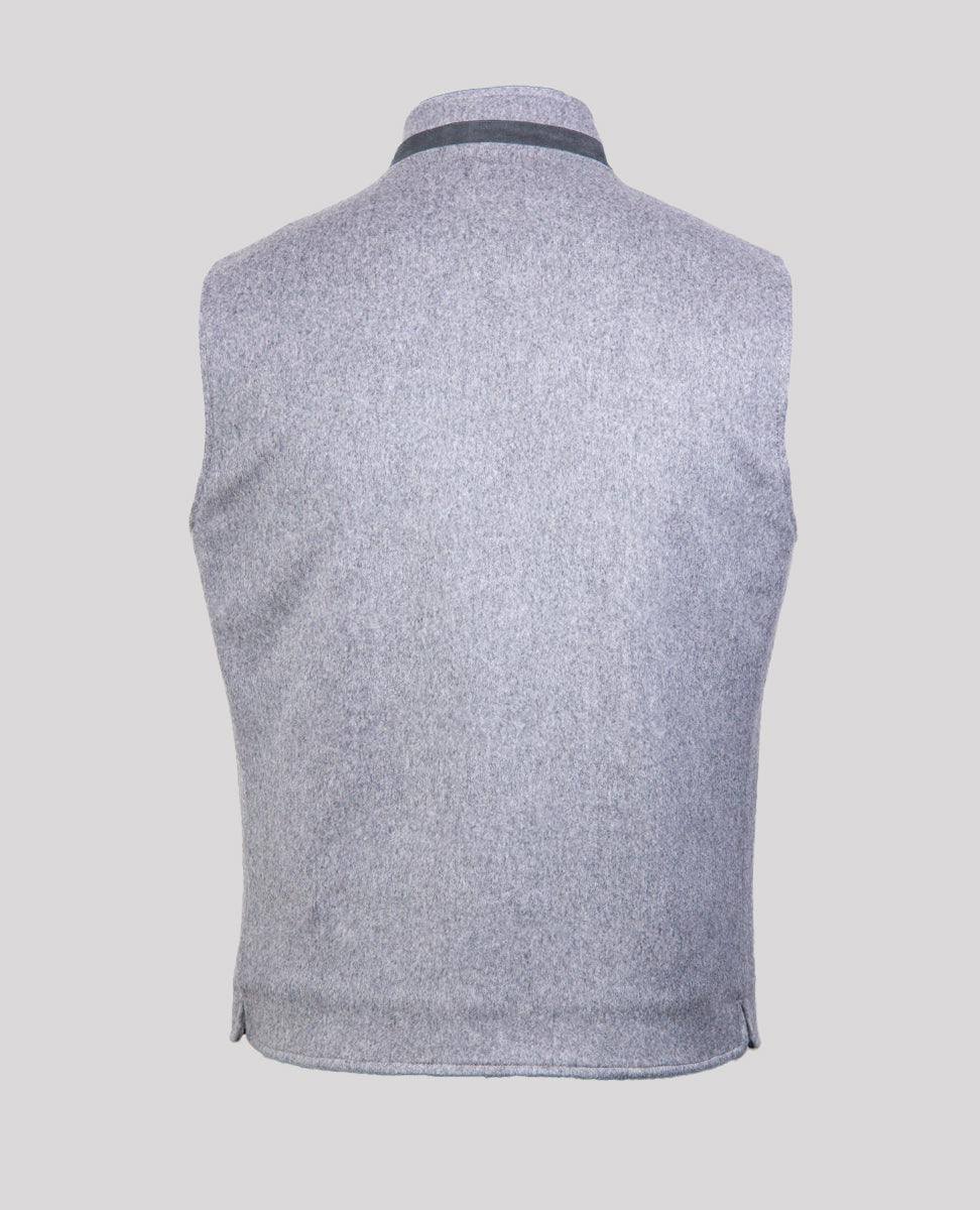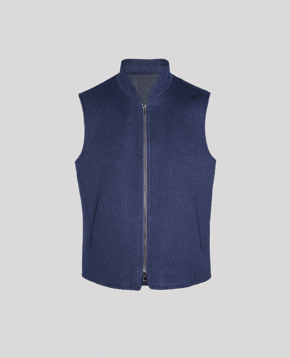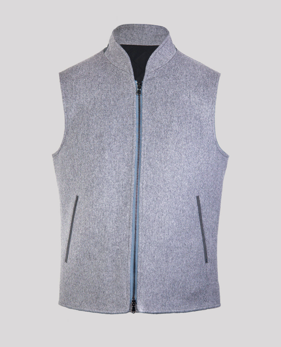 Men's Vest in Loro Piana Fabric prized for its unparalleled softness, exceptional warmth, and smooth, silky luster, this luxurious Italian-made fabric is crafted from pure wool. Under a jacket or over a knit, this handsome zip vest is a luxurious - thanks to its ultra soft cashmere - and versatility way to add a subtle touch of functional elegance to any look.