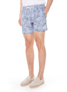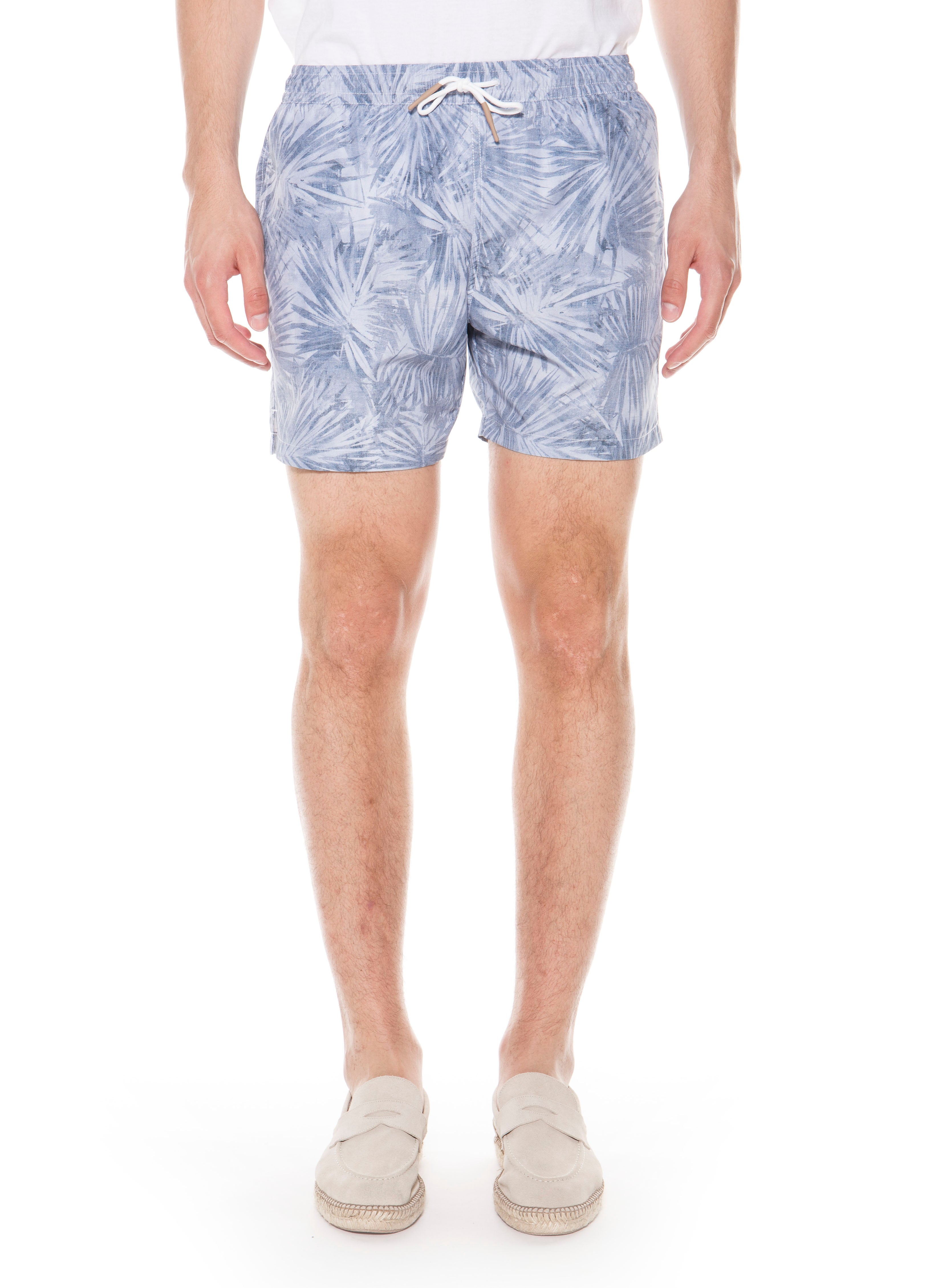 The floral print beach shorts are made of a light nylon with a silky touch, which gives ease and comfort to the wearer. The color combinations within the prints, exclusively designed for Eleventy, follow the season's trend. Regular fit and length above the knee characterize the product, embellished by the presence of a melange gray drawstring. The particular construction and the lightness of the fabric allow the swimsuit to be closed inside the back pocket.
